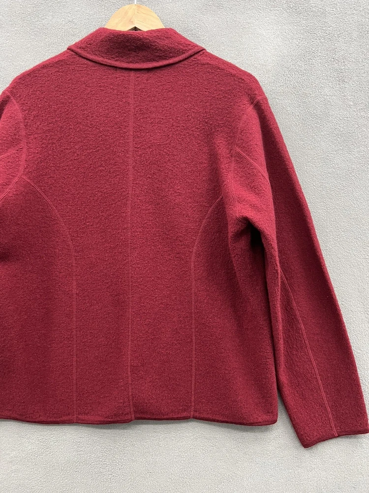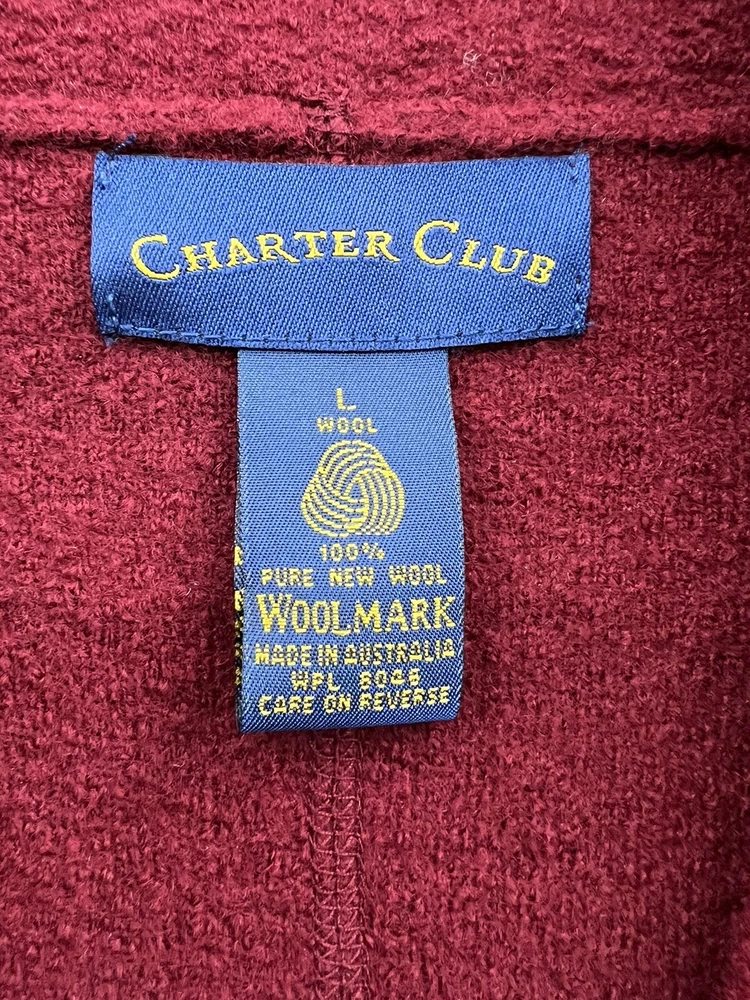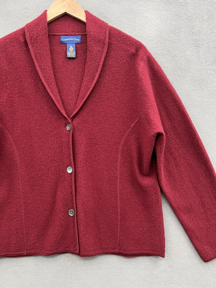 Add a touch of vintage elegance to your wardrobe with this Charter Club women's cardigan. The tight-knit, lightweight, and breathable wool fabric in beautiful red color offers warmth and comfort during fall, winter, and spring. The collared neckline, long sleeves, and regular fit of this sweater make it perfect for casual, workwear, and business occasions. The women's large size cardigan requires dry clean only, and its classic theme, solid pattern, and 100% wool material make it a must-have item for any fashion-forward woman. Get yourself this lovely vintage Charter Club cardigan and rock the retro style without talking about the condition of the pre-owned garment.