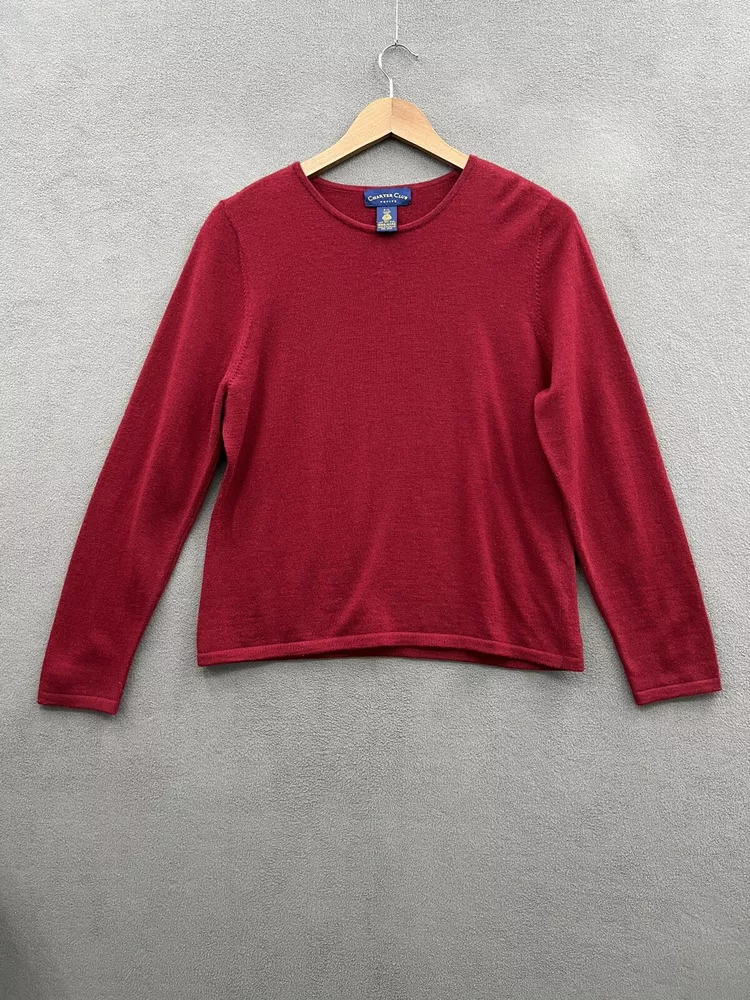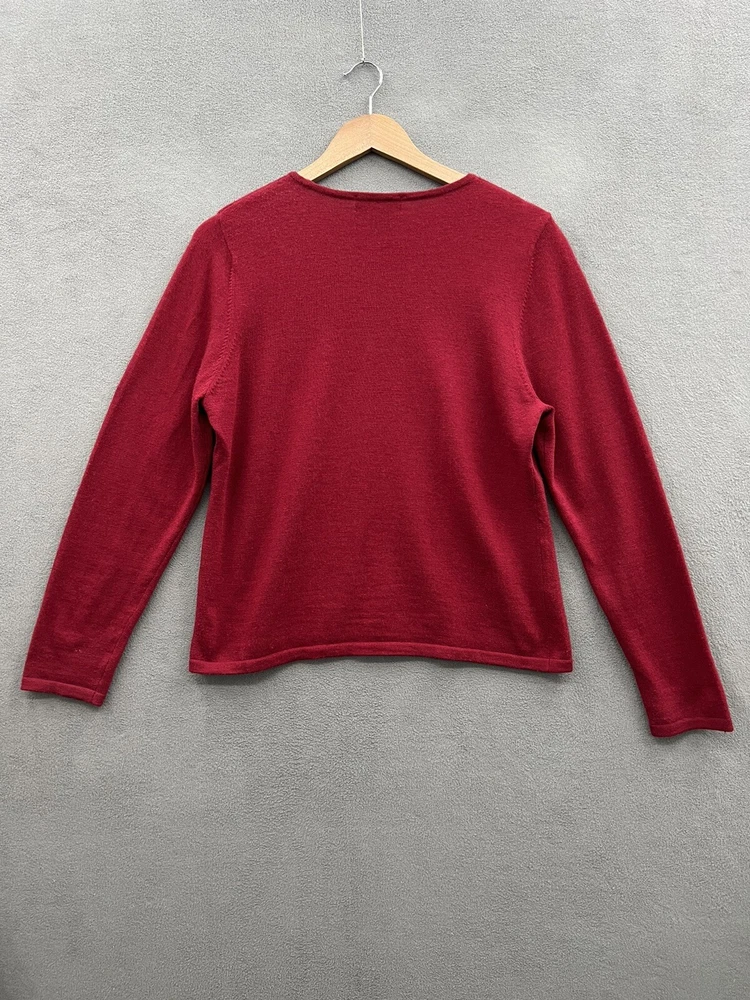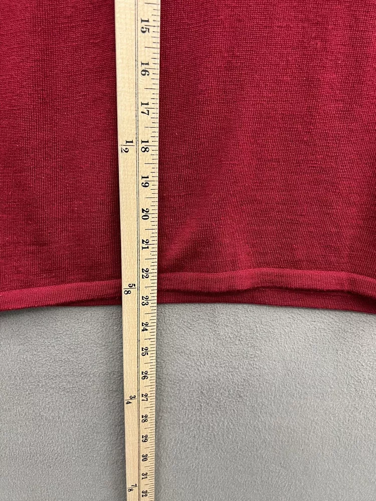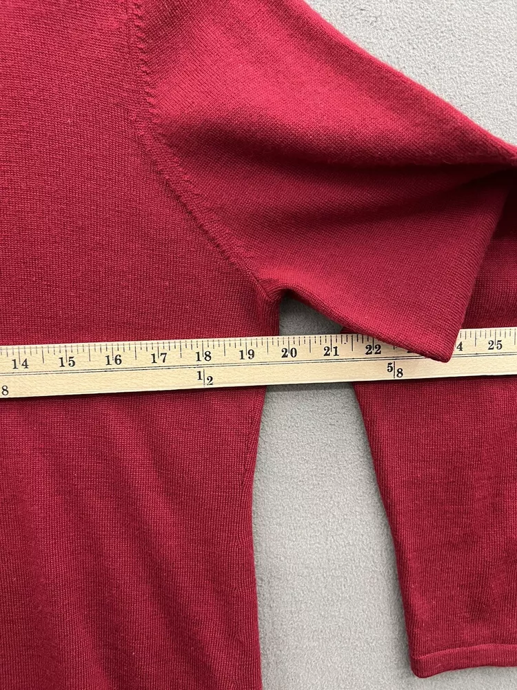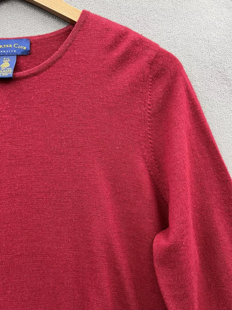 This Vintage Charter Club Woolmark Women’s Petite Large Red Sweater is made of 100% wool and features a solid pattern with a tight-knit style. The long-sleeved pullover has a classic fit, a crew neck, and is suitable for various occasions such as travel, casual outings, workwear, and business. The woolen material makes it a great choice for the winter, fall, and spring seasons. This sweater comes in size PL, is branded by Charter Club, and is meant for women who prefer the petite size type.