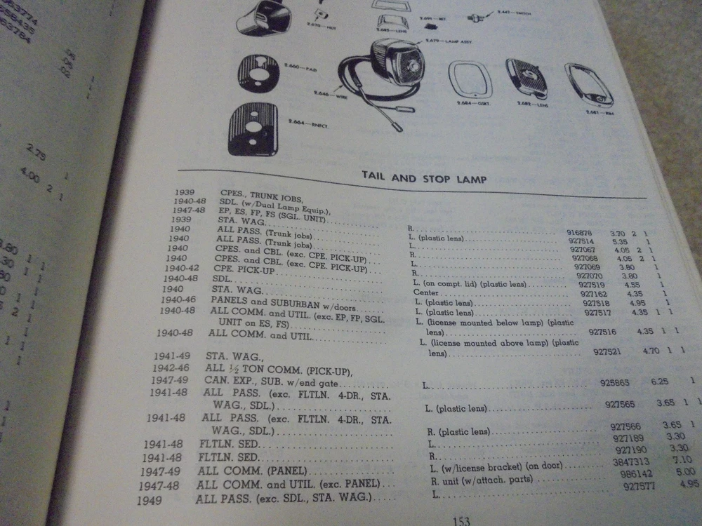 You are bidding on a Chevrolet 1929-1949 Parts Catalog. It is 781 pages. The catalog has all groups from 0 to 17. It is missing the front cover and the first page. It begins with page 3. All interior pages are in very good condition with some dogears. I combine shipping on multiple purchases.