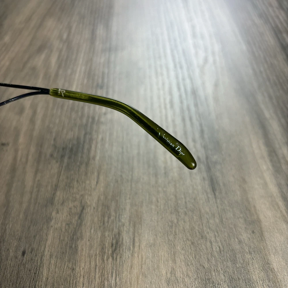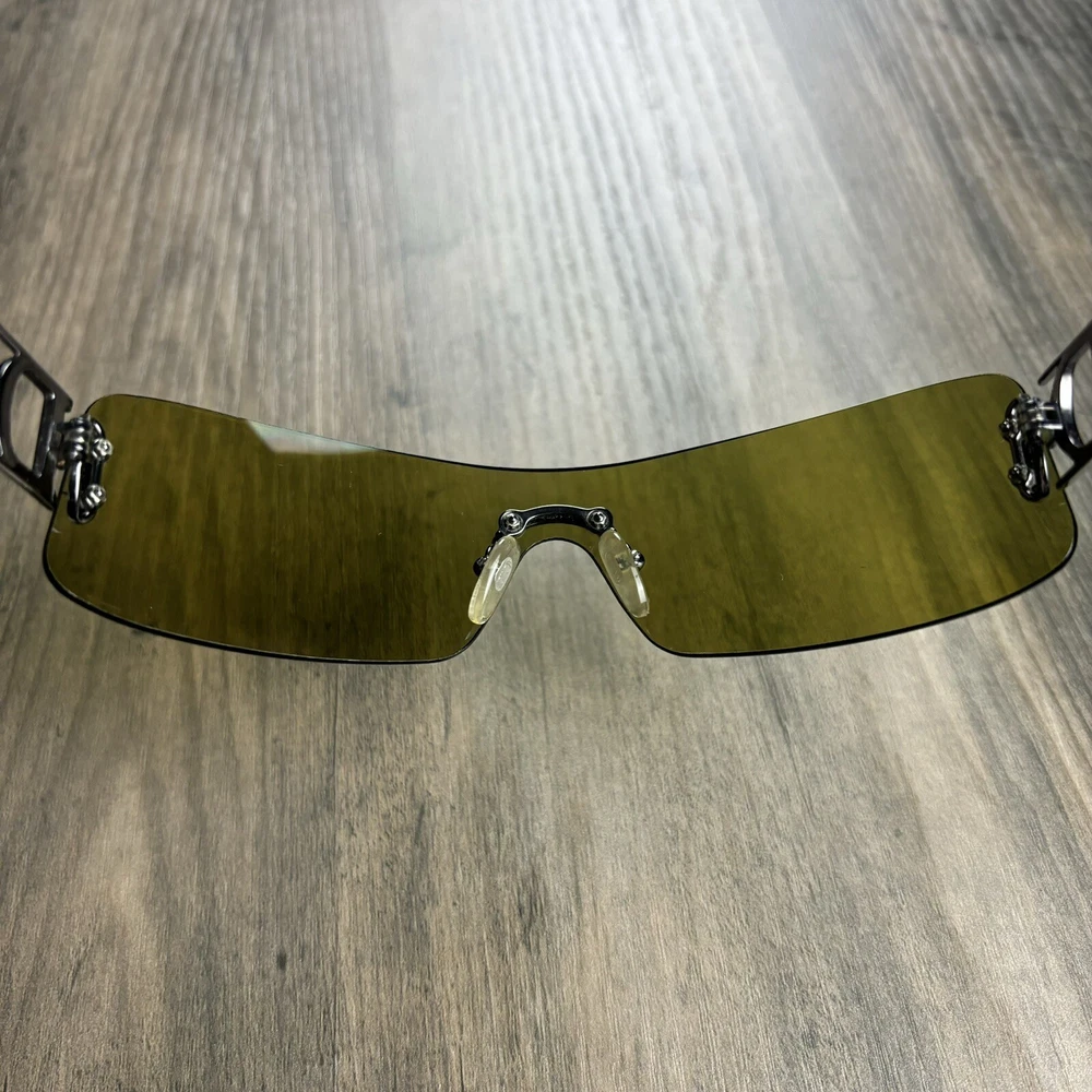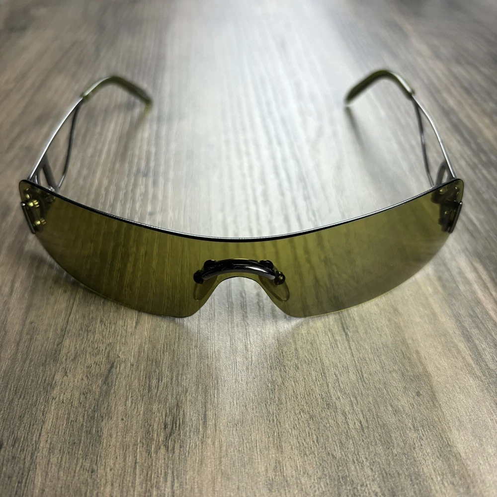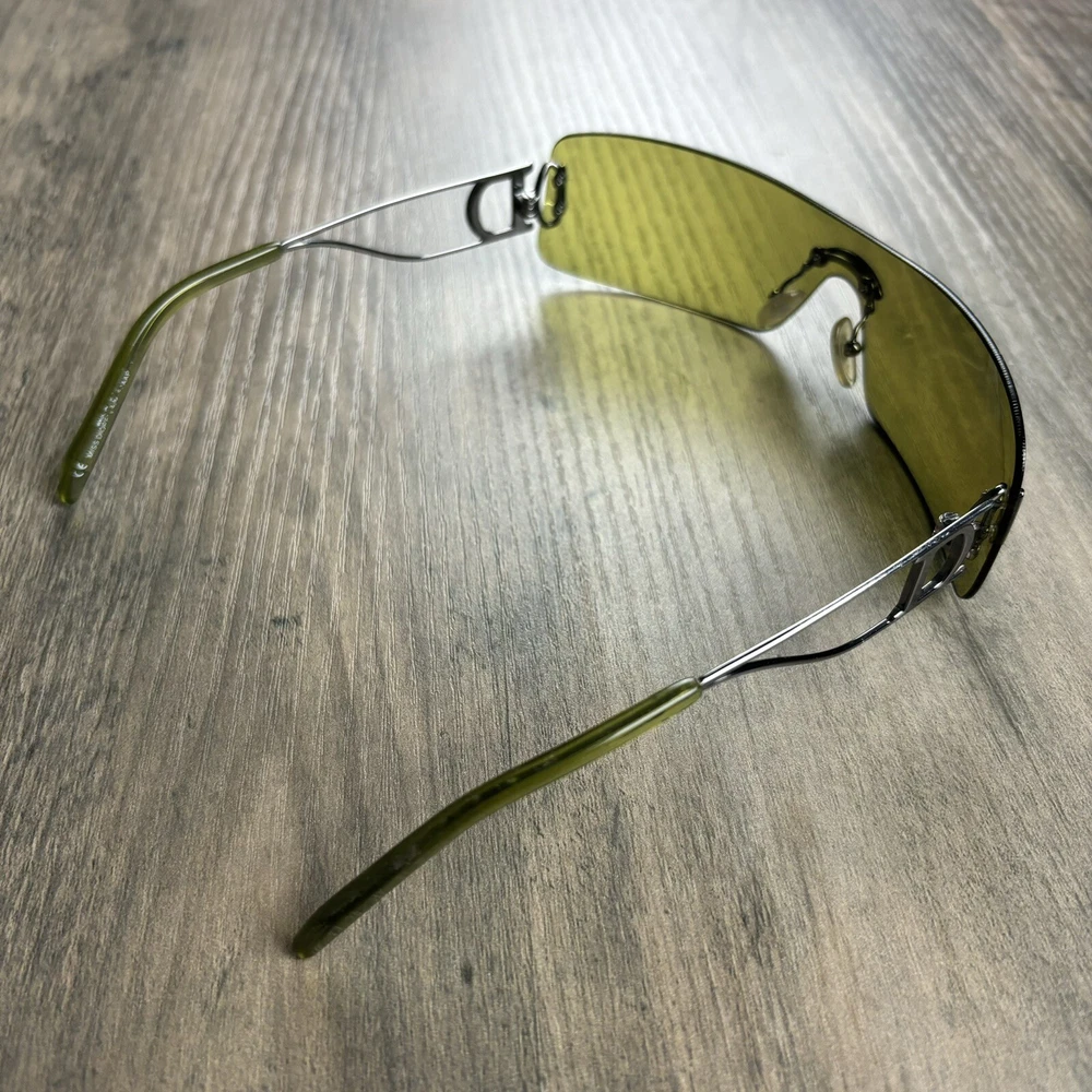 Vintage Christian Dior Miss Diorella Olive Green Shield Rimless Sunglasses Y2K. Condition is Pre-owned. Shipped with USPS Ground Advantage.
