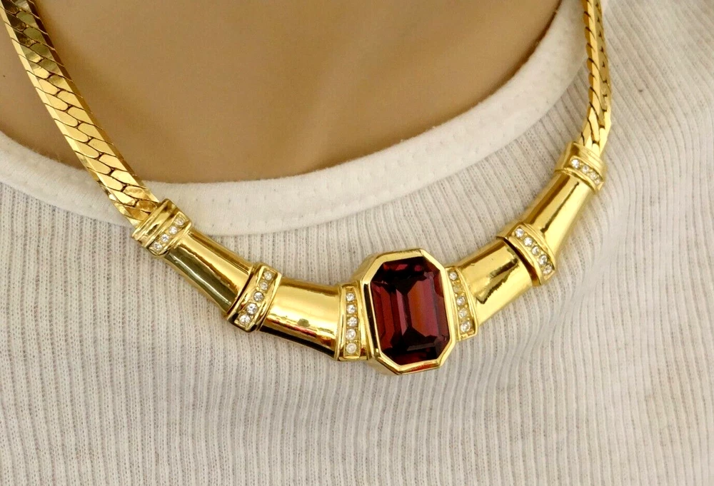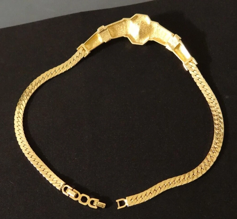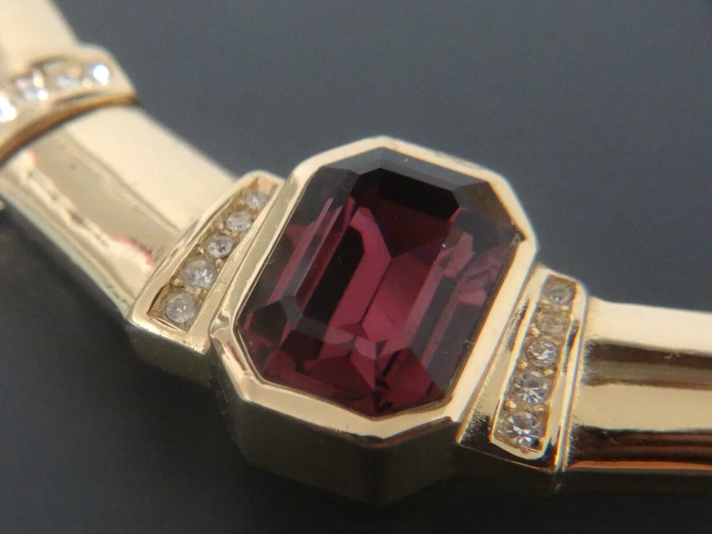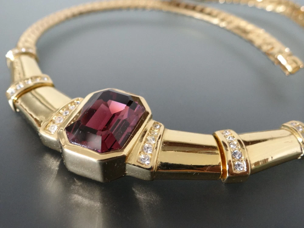 Stunning!! Vintage High End Signed Christian Dior "Chr.Dior" Vintage High End Christian Dior Runway Golden and Centered Cabochon Purple Amethyst Crystal Choker Necklace with extra Link Clasp. All In Excellent condition. Approx. measure 15" Long Thank you for looking and considering this item. Using the description, your knowledge and experience with this type of item, any Q&A messaging, along with all of the photos, decide if this item is worthy to purchase for your use or to add to the collection. Please, be aware that the vast majority of my pieces are vintage or antique and consequently NOT IN NEW or MINT CONDITION. Please, Payment is expected within three days from the end of this auction I ask that you message me to let me know that you are still shopping, usually I will open an unpaid item case 3 days after the auctions has ended Free Returns only Before 14 days.
