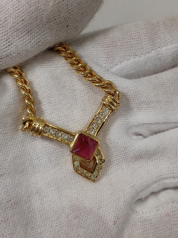 Christian Dior Y0619 Gold-Tone Hoop Necklace Elegant Design