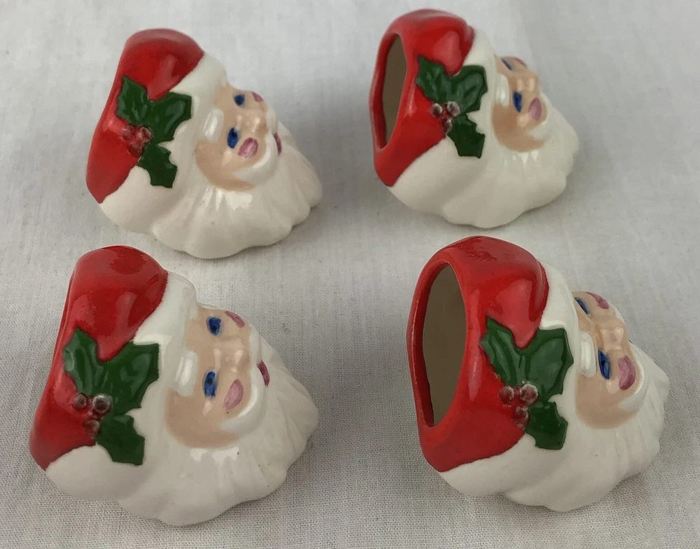 HomeVintage Christmas Santa Face Napkin Rings Set Of 4 Ceramic More Available