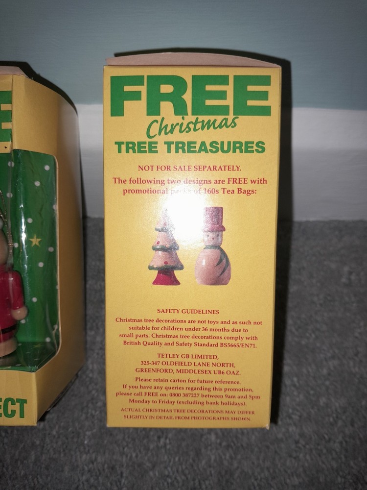 This Vintage Christmas Tree Treasures figurine set by Tetley Tea features a Santa Claus and soldier design, perfect for adding a nostalgic touch to your Christmas decor. Made of wood and adorned in multicoloured hues, these figurines capture the festive spirit of the season. The set comes boxed, making it a charming addition to any home's seasonal decorations.