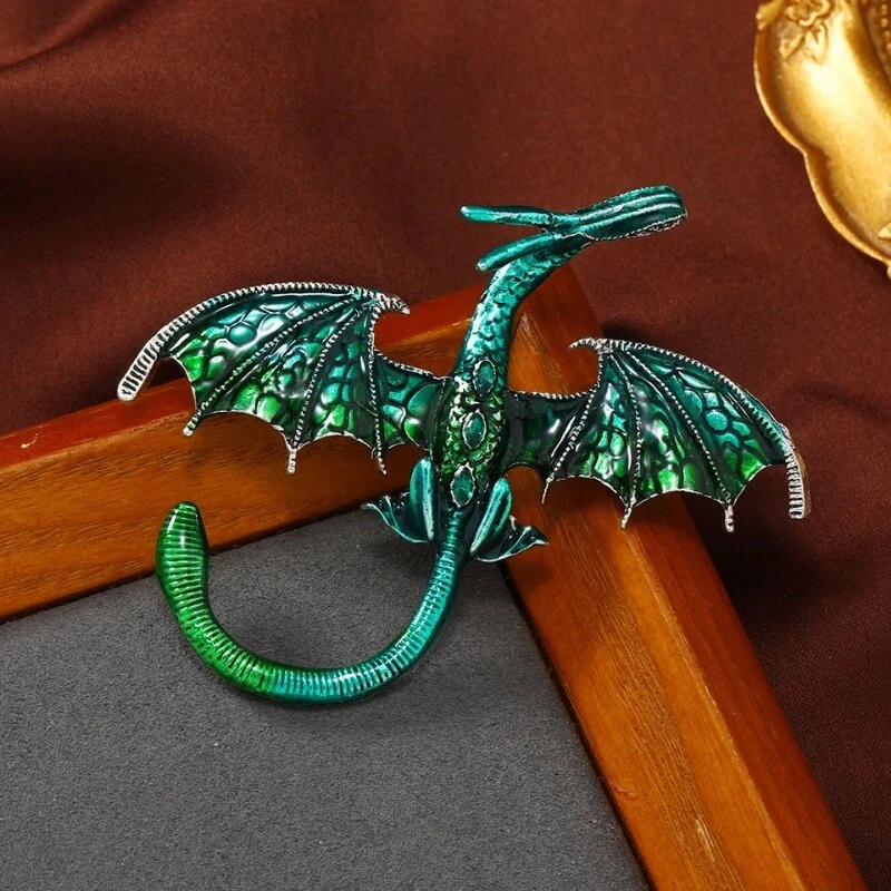 Vintage Classic Enamel Dragon Crystal Badges Pins Women Men Clasual Accessories