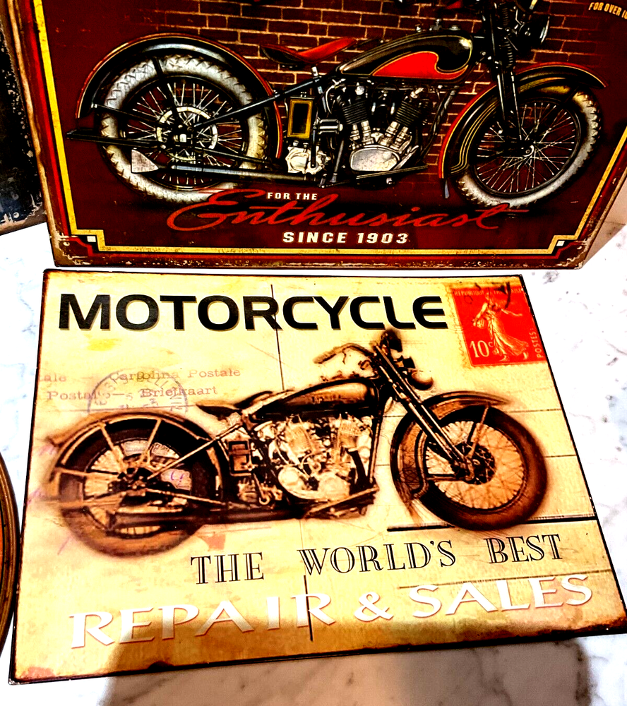 Add a touch of vintage charm to your home or office with this Classic Motorcycles Metal Tin Sign. The sign features a stylish design that showcases the beauty of classic motorcycles. Made from high-quality tin, this sign is durable and long-lasting. Ideal for motorcycle enthusiasts, this sign is perfect for adding a touch of personality to any space. The sign is easy to hang and will instantly transform any room. Whether you're a collector or simply love the vintage look, this Classic Motorcycles Metal Tin Sign is a must-have accessory.
