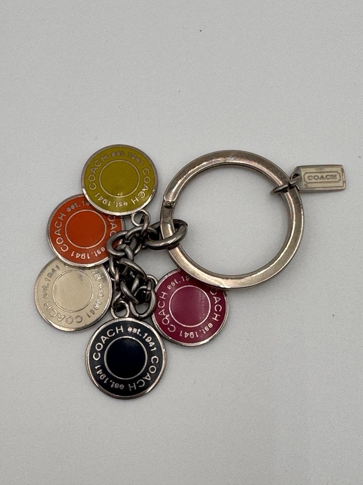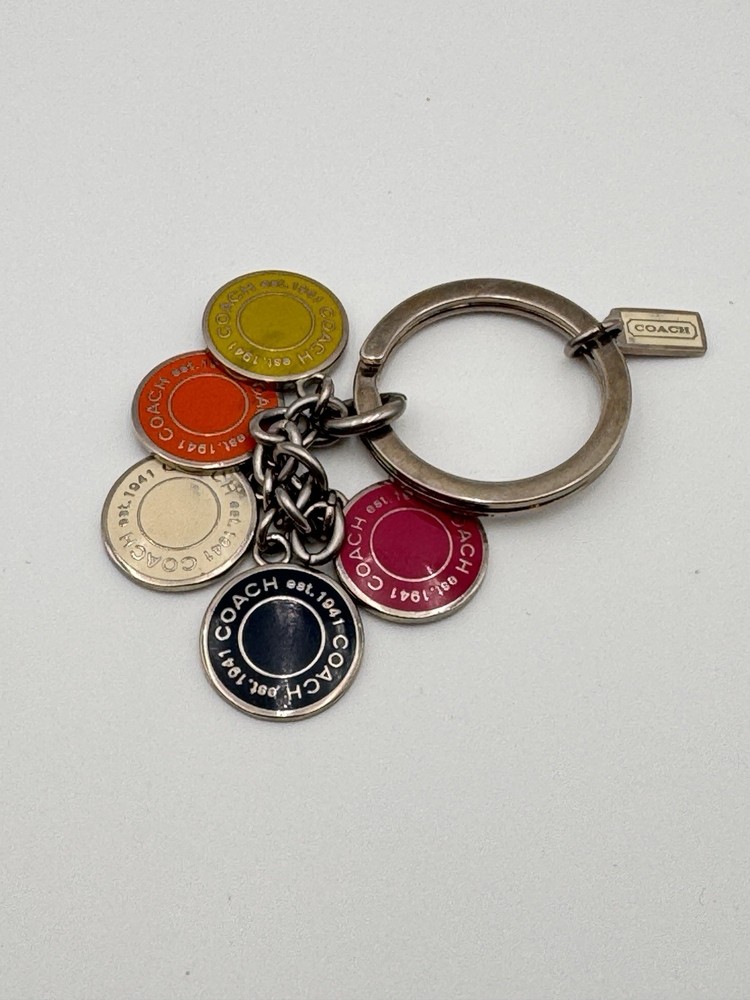 Accessorize with a touch of vintage elegance using this multicolored Coach keychain. Crafted for those who appreciate the timeless charm of a well-made accessory, this piece features an array of delightful colors that add a playful yet sophisticated accent to your everyday essentials. Ideal for the woman on the go, these dangling keychain charms are not just a practical item but a statement piece that embodies the essence of the Charmed character family. Whether it's for organizing your keys or adding a splash of color to your bag, this Coach keychain is a versatile addition to your accessory collection.