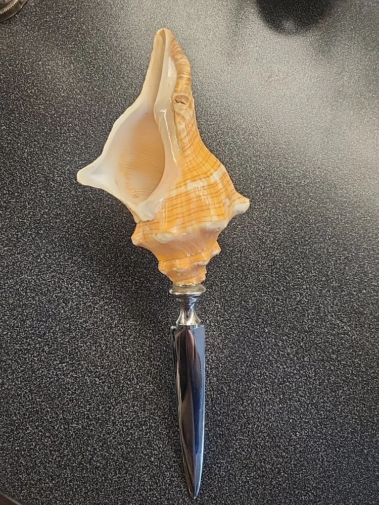 Featured is a high-quality, Vintage Conch Seashell Letter Opener, 9.5 inches long. Please review the attached pictures before bidding as they are an important part of the description. Thank you.