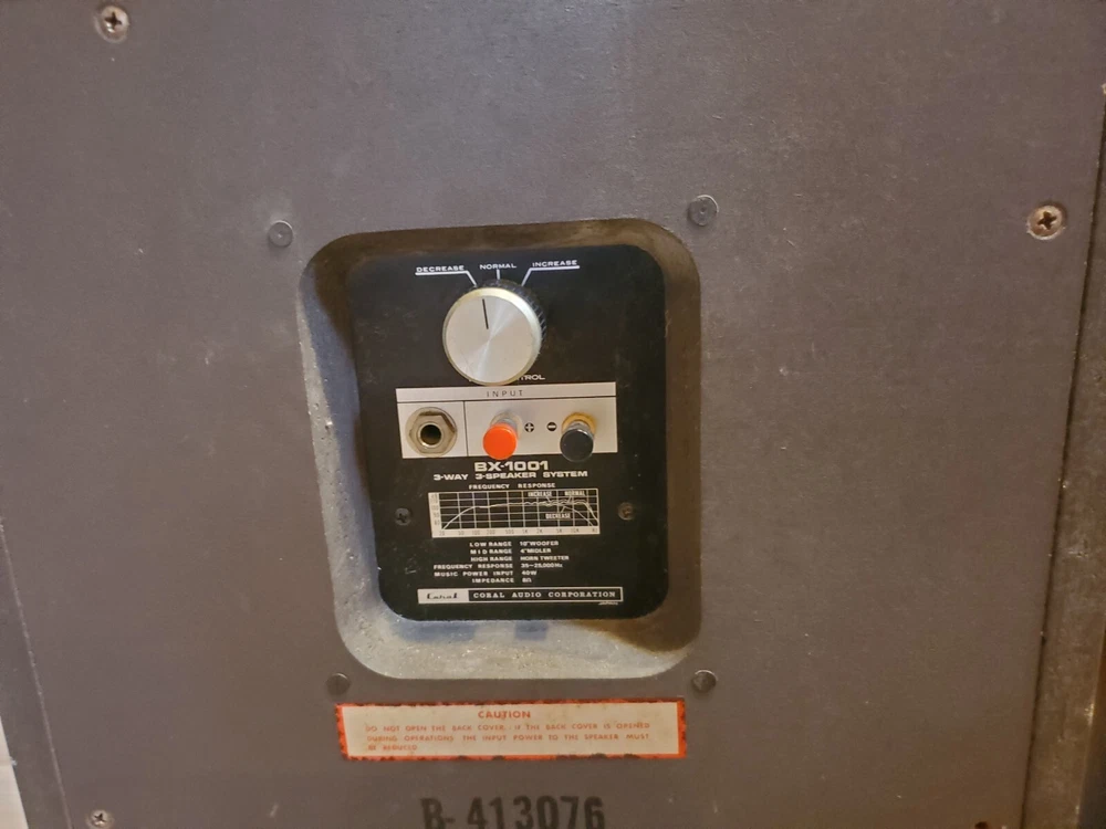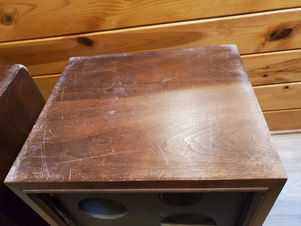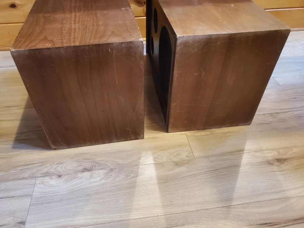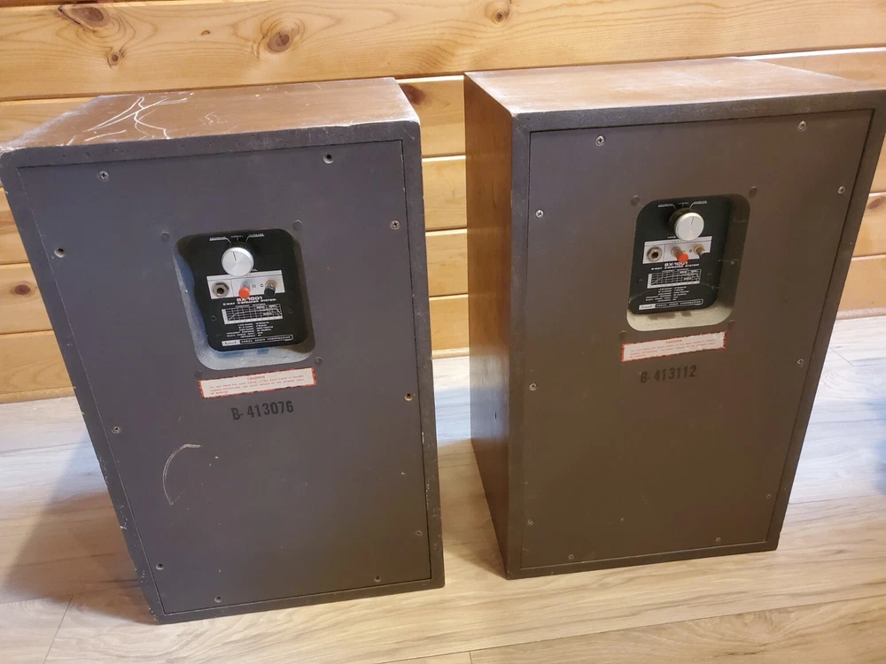 Sounds plays out of all drivers but the woofers on the speakers where the midrange/voices play out of the cone sound scratchy/ distorted and probably need to be fixed or replaced. The speaker boxes are in rough shape and both speakers need grills. The one speaker looks like someone could get away with restoring it while the other speaker box has deep scratches and a parts missing off some of the corners. Both speakers have that distinct 70s vintage sound and I think would be worth restoring to the right individual.