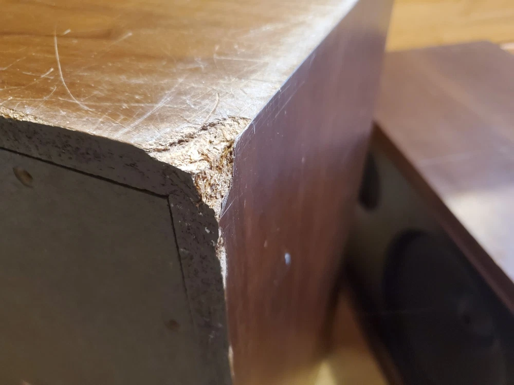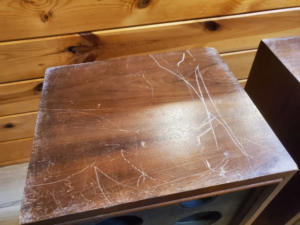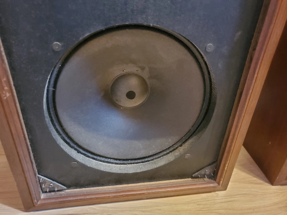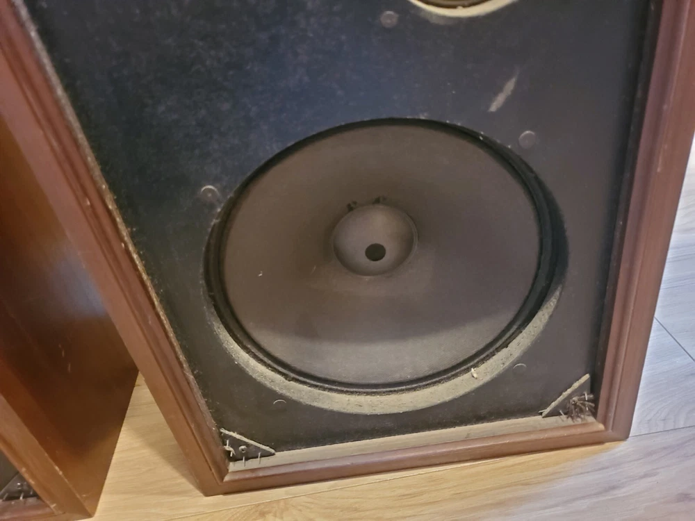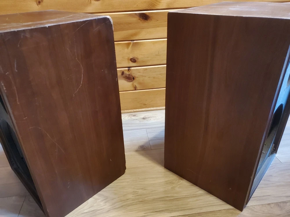 Sounds plays out of all drivers but the woofers on the speakers where the midrange/voices play out of the cone sound scratchy/ distorted and probably need to be fixed or replaced. The speaker boxes are in rough shape and both speakers need grills. The one speaker looks like someone could get away with restoring it while the other speaker box has deep scratches and a parts missing off some of the corners. Both speakers have that distinct 70s vintage sound and I think would be worth restoring to the right individual.