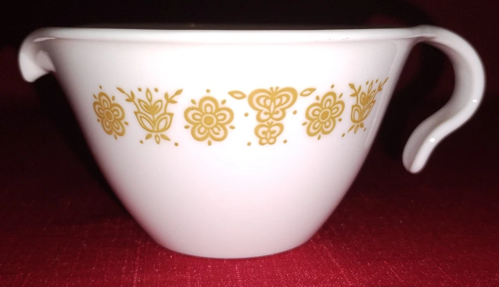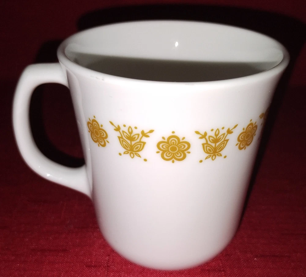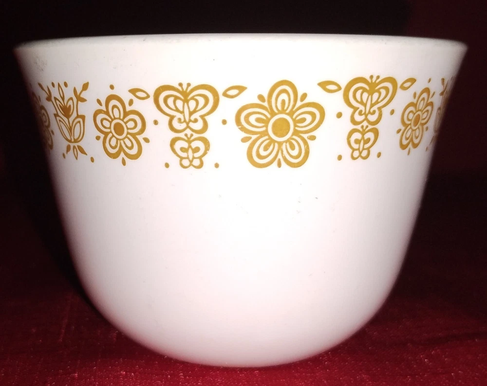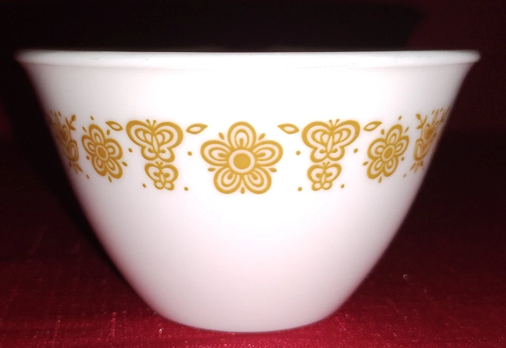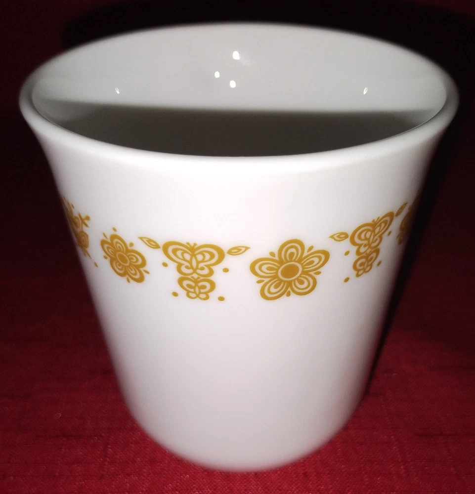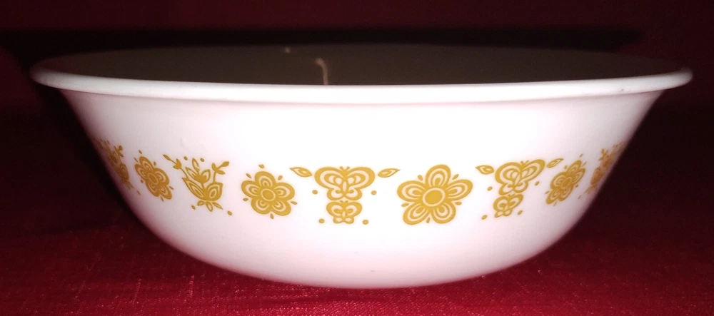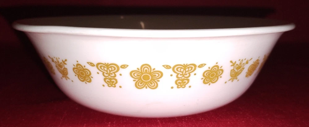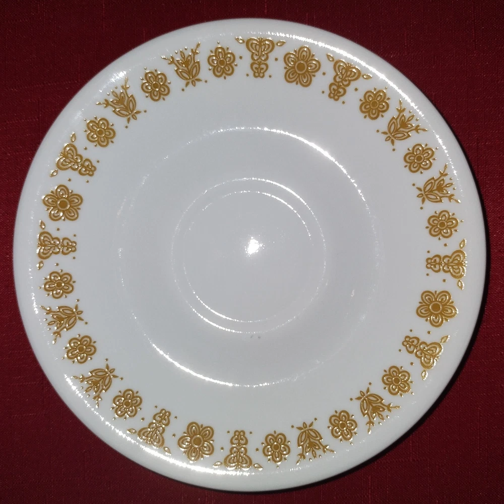 Add a touch of vintage charm to your dinnerware collection with this beautiful Corelle Corning Butterfly Gold dinner plate. The round plate features a stunning butterfly and floral pattern in a vibrant gold color, making it perfect for all occasions. Crafted from high-quality pressed glass material, this plate is both break-resistant and dishwasher safe, ensuring easy maintenance. The plate is part of the Butterfly Gold product line and was manufactured in the United States in the 1970s using a fused glass production technique. It comes with a printed backstamp and is perfect for collectors or anyone looking to add a touch of Mid-Century Modern style to their home decor. Order yours today and enjoy the beauty and functionality of this vintage dinner plate.