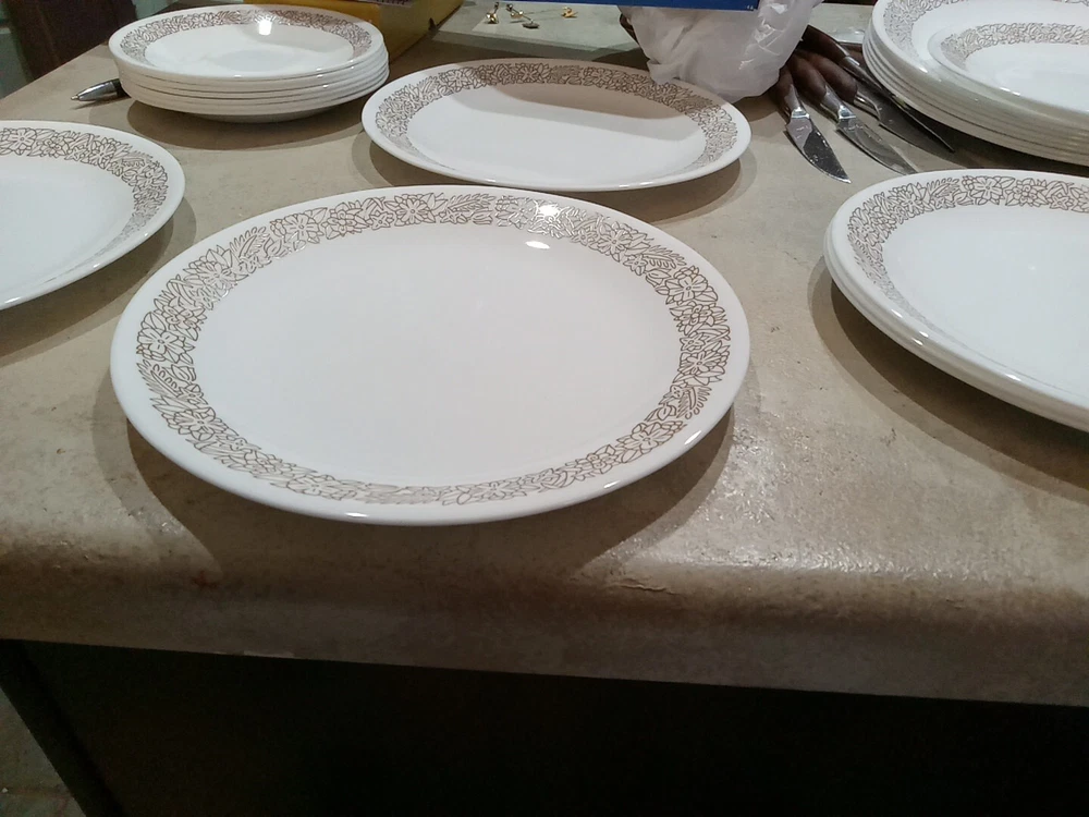 Enhance your collection with this charming four-piece vintage bowl set from Corelle. The round-shaped plates feature a beautiful woodland pattern in brown and white, making them perfect for all occasions. The set includes 4 plates, each with an item diameter of 8.5 inches, and all made from high-quality pressed glass. This original Corelle product is an antique from the 1970s, with no California Prop 65 warning. The bowls are in nice condition and have a printed backstamp. The care instructions require hand washing only. Add these unique, handcrafted bowls to your decorative cookware, dinnerware, and serveware collection today. Additional corelle at my store