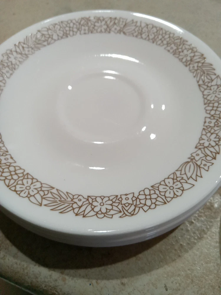 Enhance your collection with this charming four-piece vintage bowl set from Corelle. The round-shaped plates feature a beautiful woodland pattern in brown and white, making them perfect for all occasions. The set includes 4 plates, each with an item diameter of 8.5 inches, and all made from high-quality pressed glass. This original Corelle product is an antique from the 1970s, with no California Prop 65 warning. The bowls are in nice condition and have a printed backstamp. The care instructions require hand washing only. Add these unique, handcrafted bowls to your decorative cookware, dinnerware, and serveware collection today. Additional corelle at my store