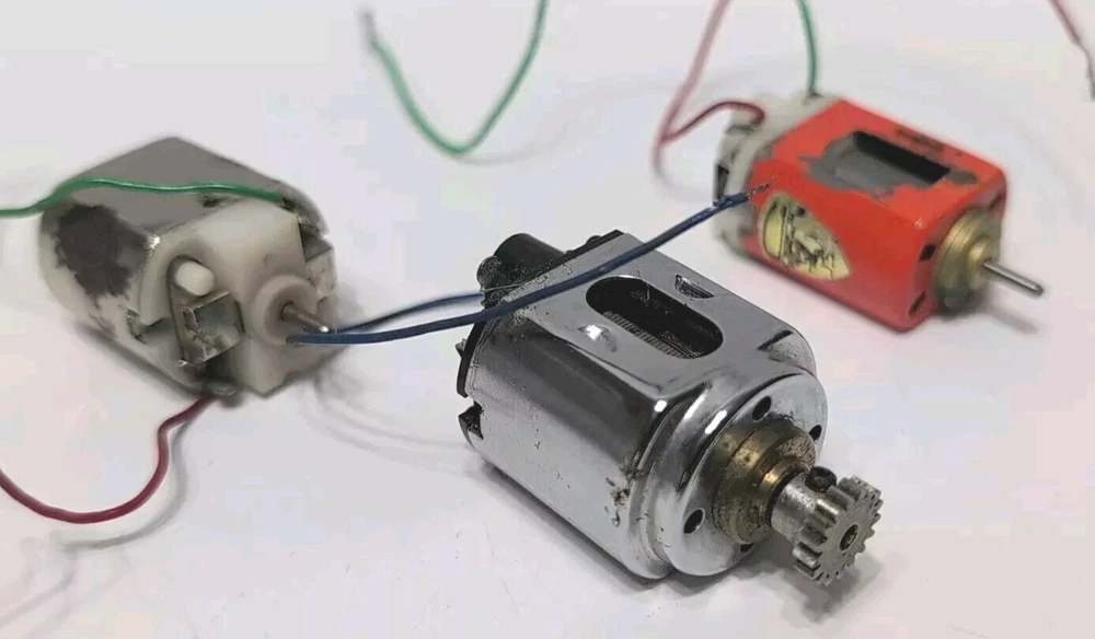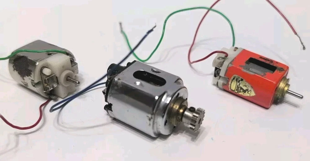 Tested with 9v battery only. The Cox and chrome Mabuchi run. Note the rust on the Mabuchi. Also included is the orange Strombecker Mabuchi which I could not get to run. Some rust on that one also. See pics with close-ups for best description. On Dec-18-24 at 14:06:41 PST, seller added the following information: Tested with 9v battery only. The Cox and chrome Mabuchi run. Note the rust on the Mabuchi. Also included is the orange Strombecker Mabuchi which I could not get to run so tested on track connection and it works also. Some rust on that one also. See pics with close-ups for best description. On Dec-18-24 at 16:58:41 PST, seller added the following information: Retested on track - motors run and wheels turn on all three.