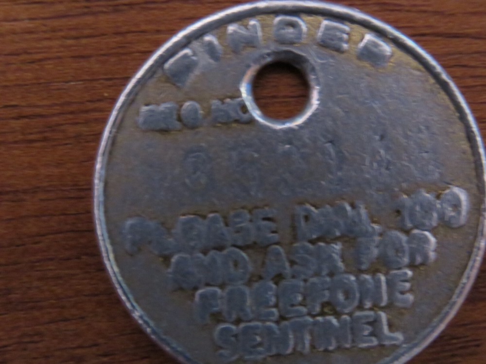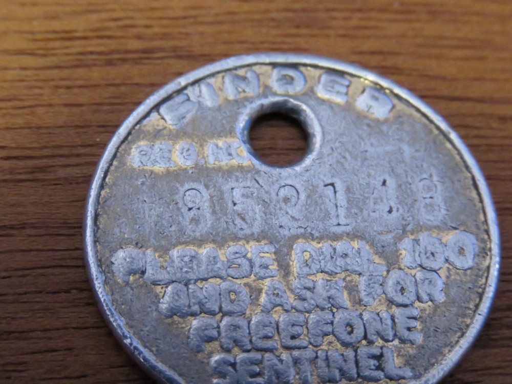 Vintage Credit Card Sentinel 852148 Finder Coin Disc Badge Havant Hampshire. Silver coloured metal. 2.8cm diameter. Please check my other listings as having a sort out
