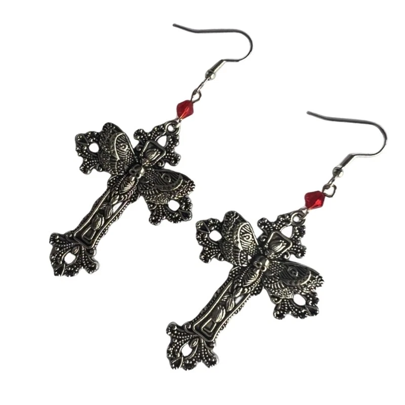 Features: and high Make a bolds statement with these unique earrings Gothic and punk styles, featuring a that combines religious symbolism and mysterious patterns. Crafted from fine alloy, these earrings are not only stylish but also lightweight and comfortable to wear, ensuring long lasting for individuals who dark, mysterious, and distinctive styles, these earrings are a must have for fashion enthusiasts seeking a standout look. Whether you're attending parties, concerts, or simply going about your daily activities, these earrings will add a touch of drama and individuality to your attire, making you stand out. Looking for a special a friend or loved These of a kind earrings make a thoughtful present for those who appreciate unique and edgy fashion accessories. Specifications: Alloy Size and Color: As the pictures shown 4 Optional: As choose. Quantity: 1 Pair Package Includes: 1 Pair x Earrings note: Please allow 0-1cm error due to manual measurement. please make sure you do not mind before you bid. Due to difference between different monitors, the picture may not reflect the actual color of the item.