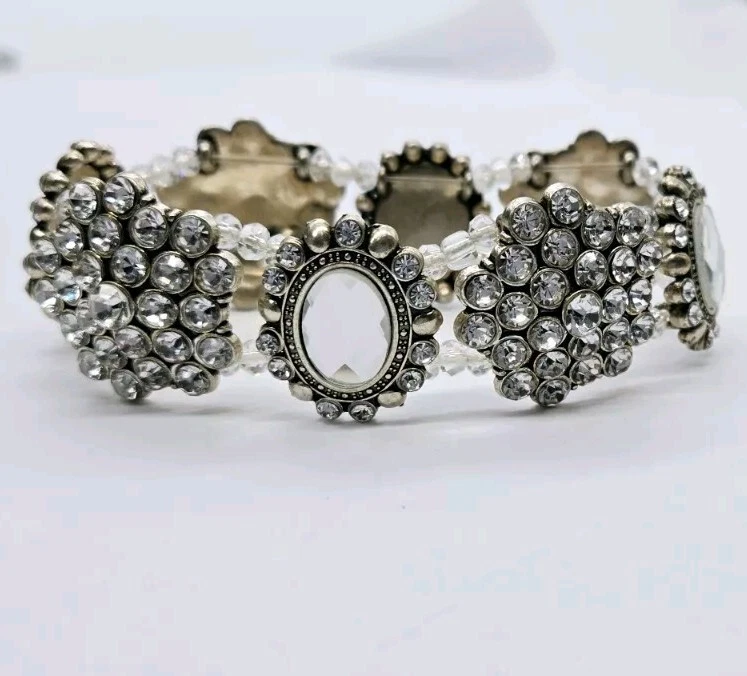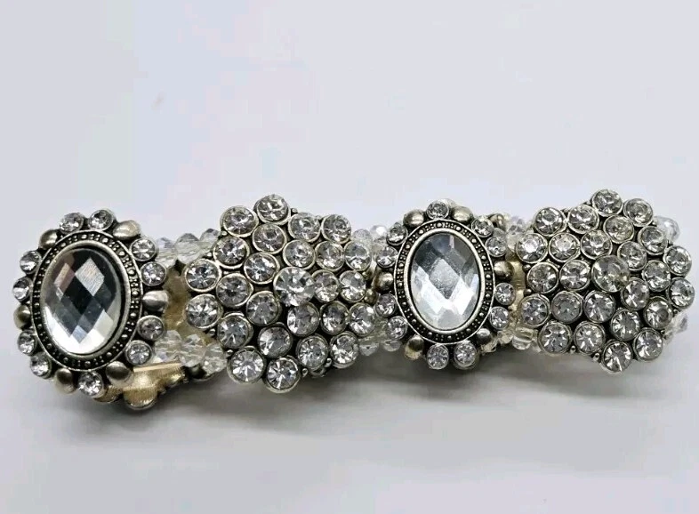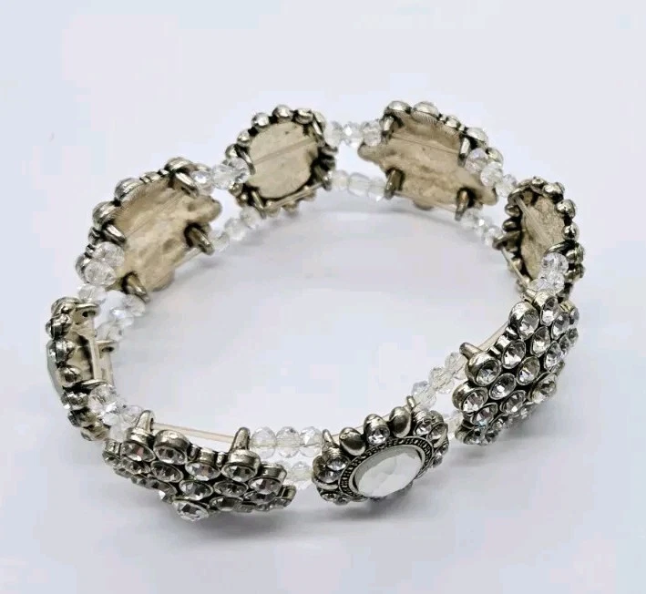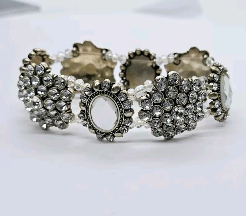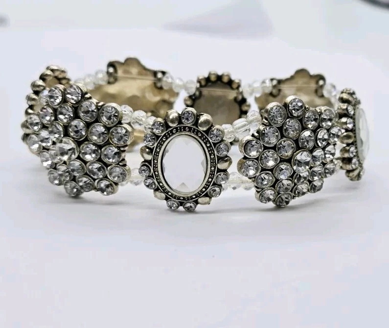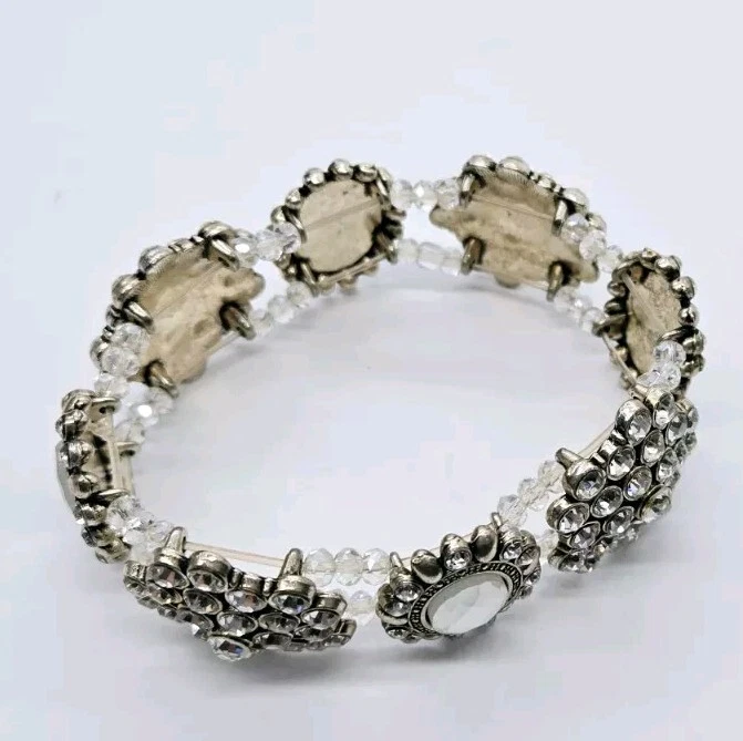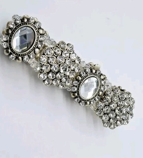 Vintage Crystal Stretch Bracelet Cluster Victorian One Size Silver tone