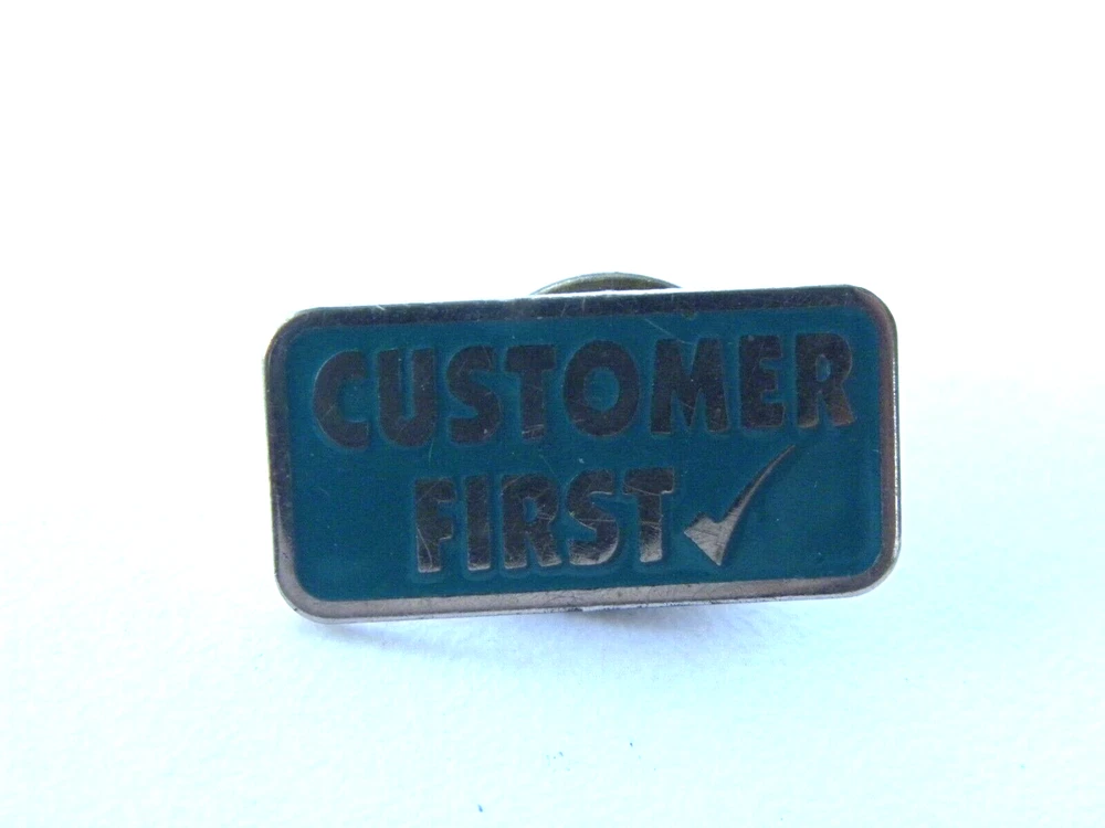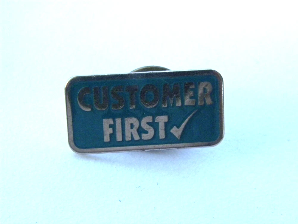 Vintage Customer First Enamel Pin Measures about 1 inch Good condition, some scratching /wear Please see photos as they are included as part of the description. I do combine shipping on multiple items. Please request an invoice on multiple items before paying. Based on weight and location. 61