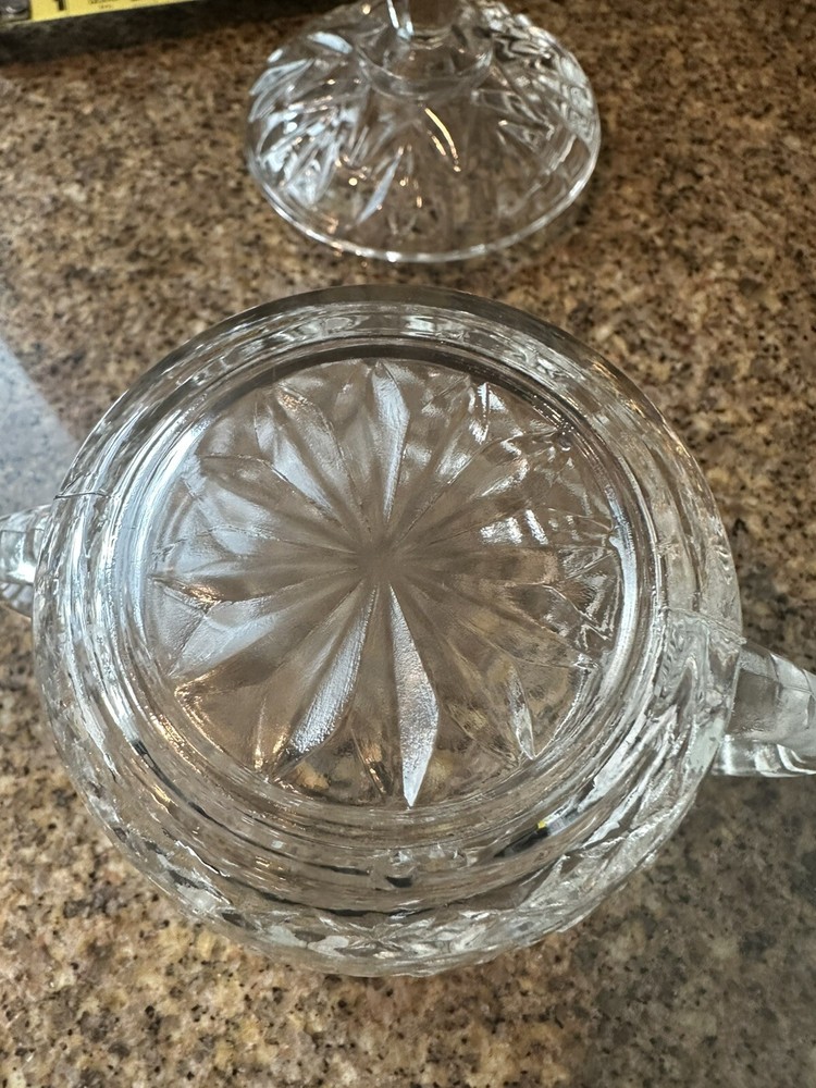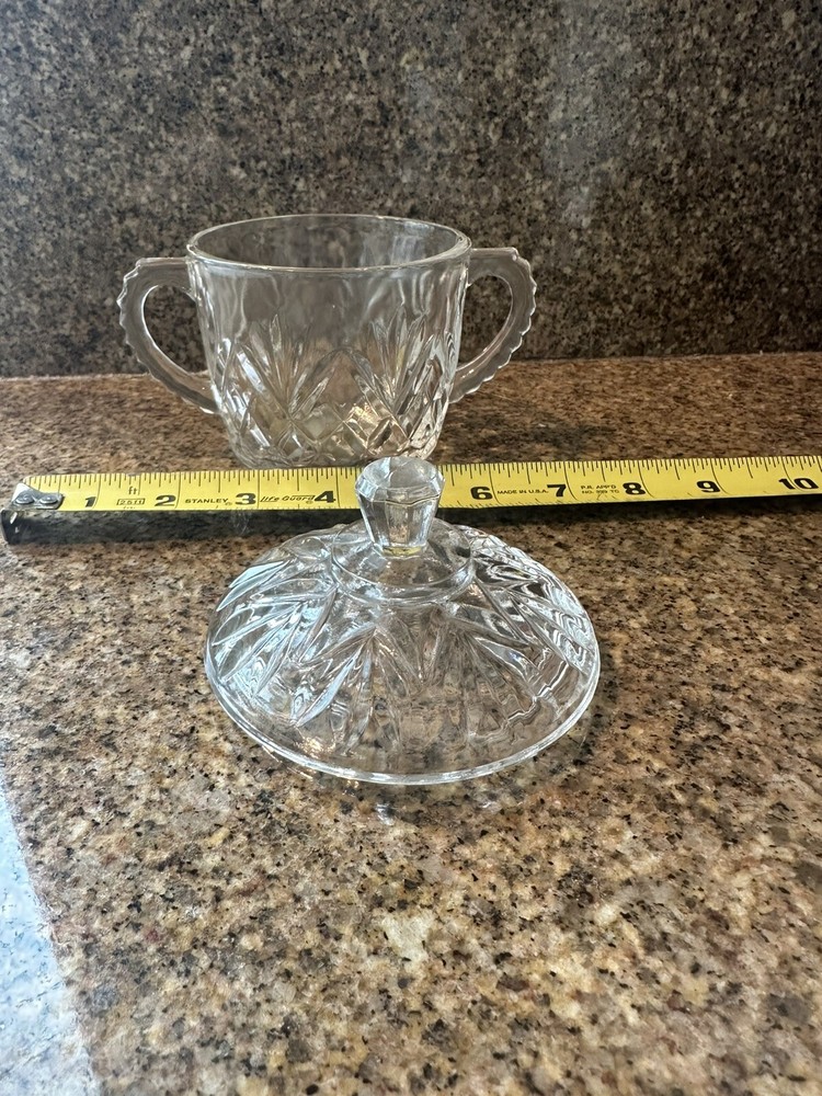 This vintage cut glass candy dish with lid is a stunning addition to any collection. The dish features a round shape and an American theme, with intricate cut glass details that highlight its beauty. This original piece is a testament to the craftsmanship of the era. The dish comes with two items in the set, and it is perfect for displaying as a decorative piece or using to serve candy and other treats.