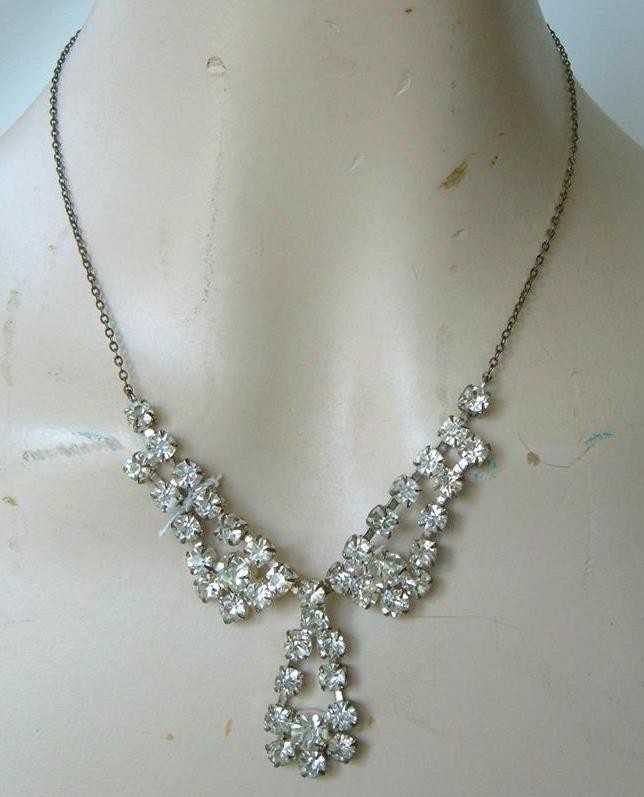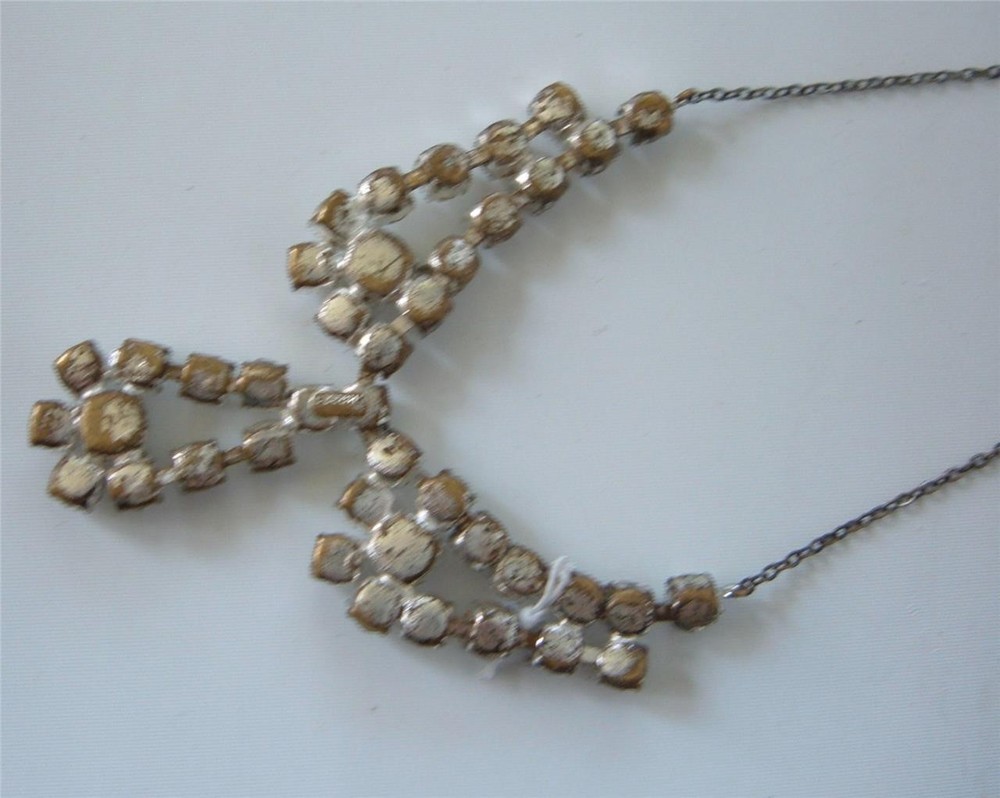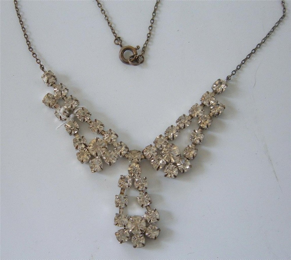 Antique Vintage Czech Clear Rhinestones Necklace Fixed Station Pendant Choker. I don't know if you've seen Czech clear rhinestones from this period-but once you do-you can spot them from a mile away. brilliant,dazzling clear All prong,hand set czech glass crystals-silver wash over brass,fine chain,spring clasp.some lovely even wear to the wash-marked /signed on the backside Czecho Measures 16 1/8" end to end station is 3 3/4" x 1 1/4" w..GORGEOUS!! I am so sorry but after decades here I am still unable to photograph sparkly things..check out our other auctions and store for more wonderful things! Add me as a favorite seller,follow me,and check back with me often as I am always on the hunt,and list a few times per week. Vintage Czech Clear Rhinestone Fixed Pendant Collar Necklace Silver 16" DAZZLING Vintage Czech Clear Rhinestone Fixed Pendant Collar Necklace Silver 16" DAZZLING Click images to enlarge Description Vintage Czech Rhinestone Necklace Fixed Pendant Collar Clear Diamante Silver 16".I don't know if you've seen Czech clear rhinestones from this period-but once you do-you can spot them from a mile away. brilliant,dazzling clear All prong,hand set czech glass crystals-silver wash over brass,fine chain,spring clasp.some lovely even wear to the wash-marked /signed on the backside Czecho Measures 16 1/8" end to end station is 3 3/4" x 1 1/4" w.. GORGEOUS!! I am so sorry but after decades here I am still unable to photograph sparkly things. .check out our other auctions and store for more wonderful things! Add me as a favorite seller,follow me,and check back with me often as I am always on the hunt,and list a few times per week. Payment Payment is expected within 3 days of purchase. Contact Us via Ebay secured mail Get images that make Supersized seem small. Showcase your items with Auctiva's Listing Templates! THE simple solution for eBay sellers.