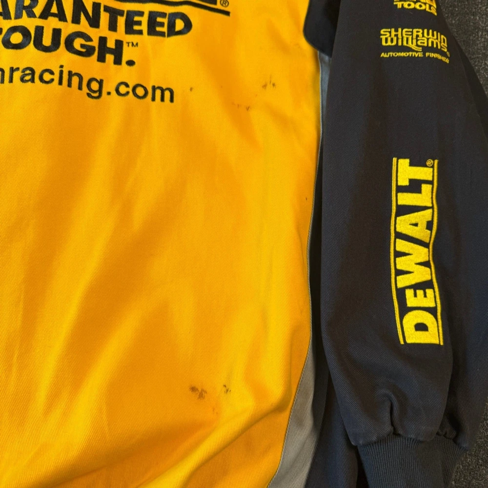 This vintage DeWalt Racing jacket is a must-have for any NASCAR fan! The XXL size fits great, and the classic Matt Kenseth Roush Racing design looks awesome. The small stains are barely noticeable, and the $10 shipping is a steal for such a cool piece of racing history. Perfect for collectors or anyone who loves retro sports gear!