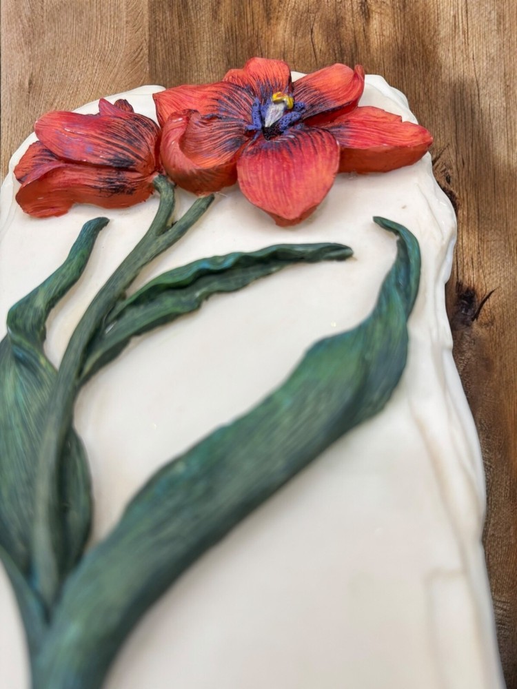 Vintage Decoline NY Floral 3-D sculpture Wall Plaque Red tulip Resin flower Excellent condition no chips or cracks measures approximately 4 1/2" x 8 3/4"