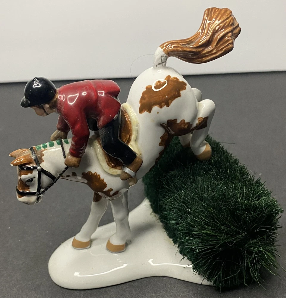 Dept 56 Bucks County Horse Riding (horse only) Mixed Lot As Is. Paint damage and some chips, see photos for condition of items. The fence is discolored. Thanks for viewing.
