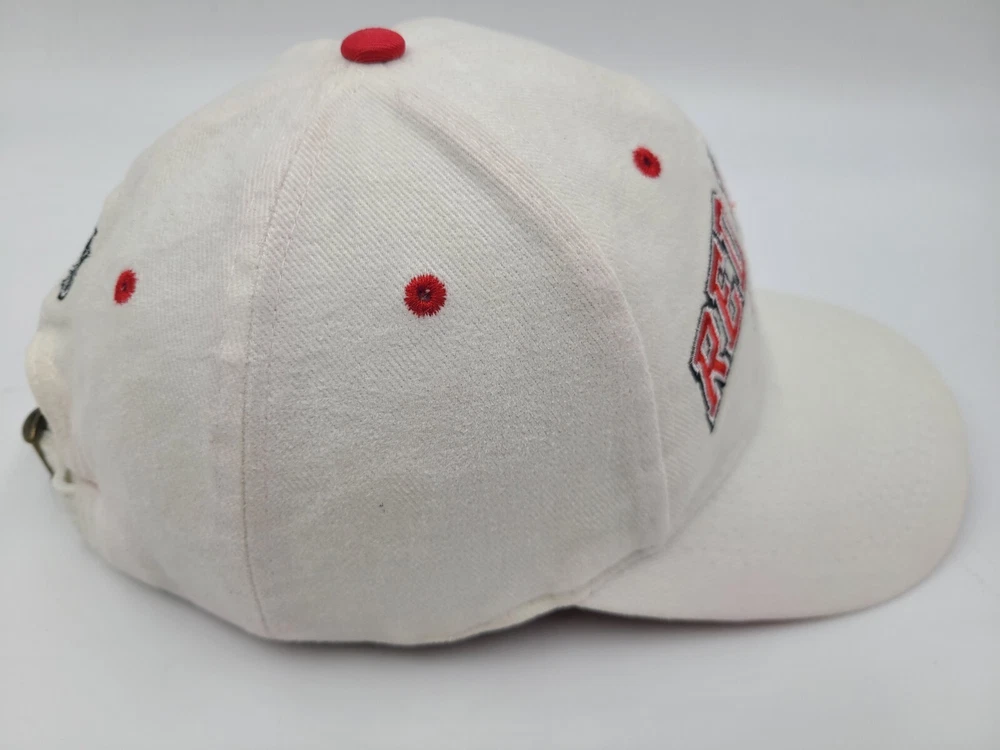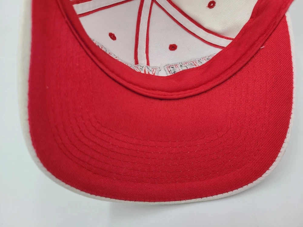 The tag says one size fits most, but it seems best suited for smaller sized heads. Also has stains/discoloration on the brim, front, and sides as seen in photos. Vintage Detroit Red Wings CCM Strapback Adjustable (Seems Small) Hat Cap Men NHL. EACH ADDITIONAL HAT PURCHASED IS ONLY $1 ADDED SHIPPING!