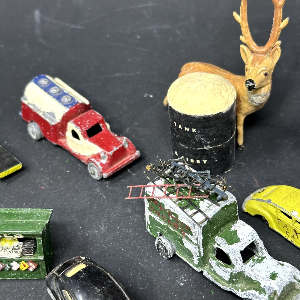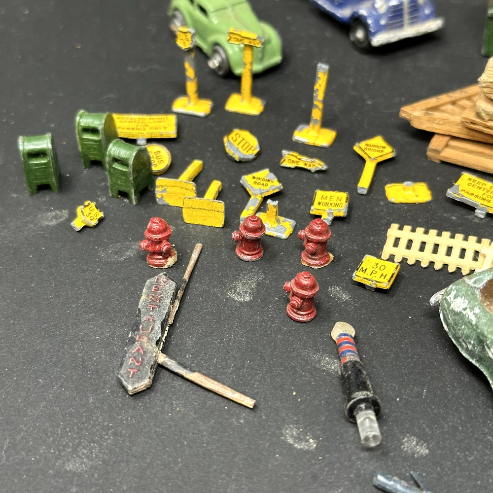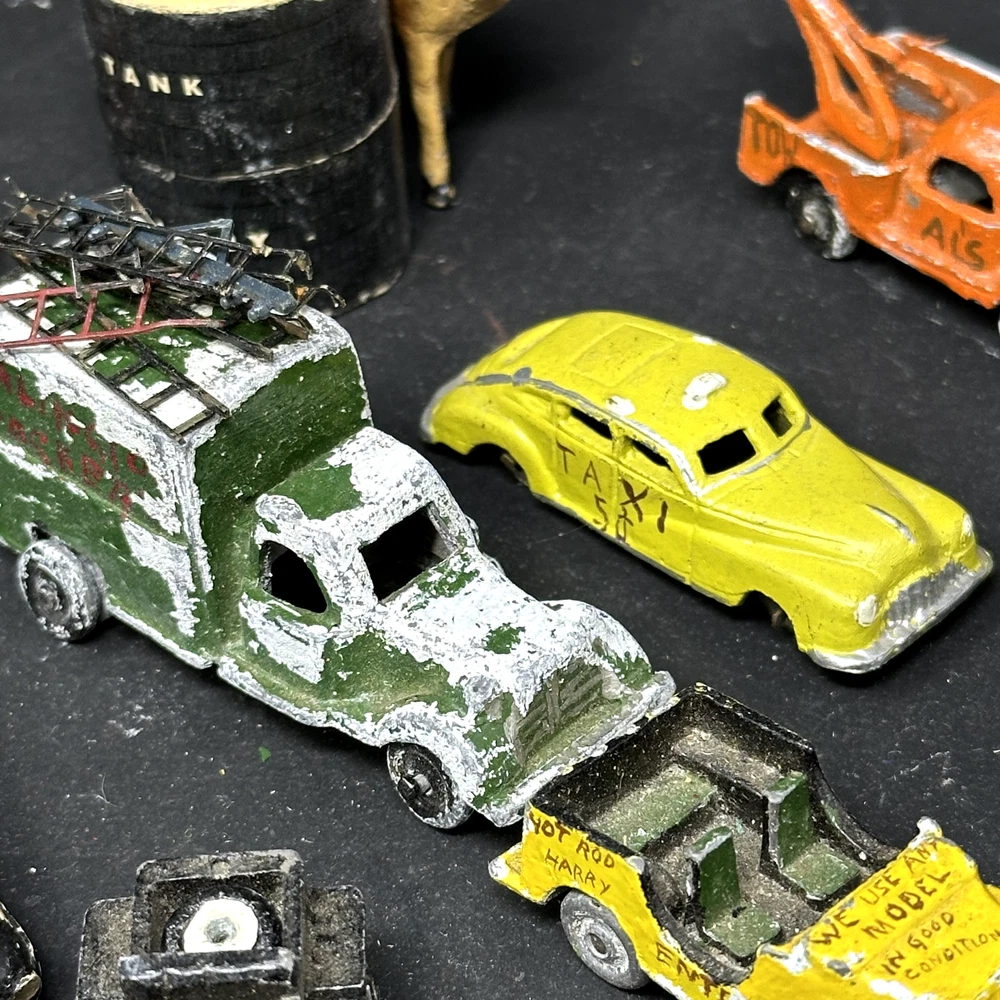 Vintage Die Cast Metal Cars Trucks Tractor Carts Lot and Accessories