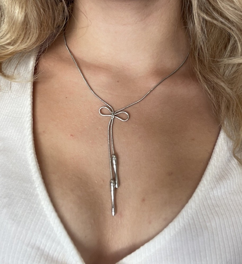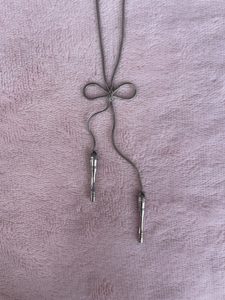Vintage Dior Rhinestone Logo Pendant Silver Plated Necklace