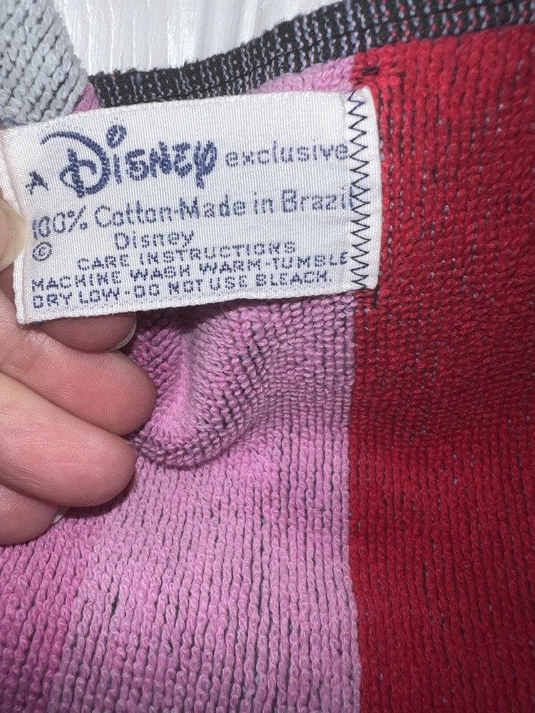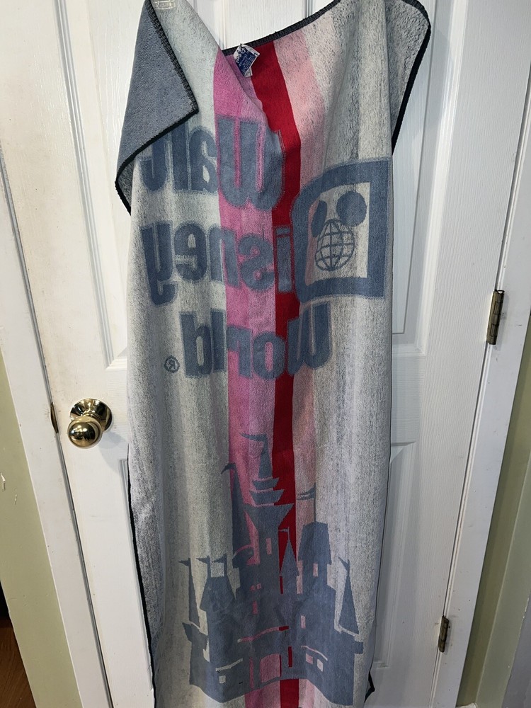 UPC:Does not applyCountry/Region of Manufacture:BrazilRoom:Bathroom, PatioType:Beach TowelCharacter:NoneSeller Notes:“nostalgia, iconic, beach, fun”Item Width:25 inFeatures:NoneNumber of Items in Set:1Theme:80s, 90s, Castle, Disney, Retro, Walt Disney WorldTime Period Manufactured:1980-1989Set Includes:Beach TowelDepartment:AdultsMaterial:CottonPattern:RainbowActivity:Beach, Gym, Pool, Sauna, SpaColor:MulticolorSoftness:Crispgtin13:Does not applyShape:RectangleFranchise:DisneyItem Length:50 inItem Thickness:0.1 inBrand:Disney