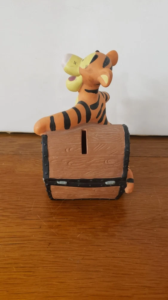 Vintage Disney Tigger Treasure Chest Plastic Coin Piggy Bank. Minor surface wear.