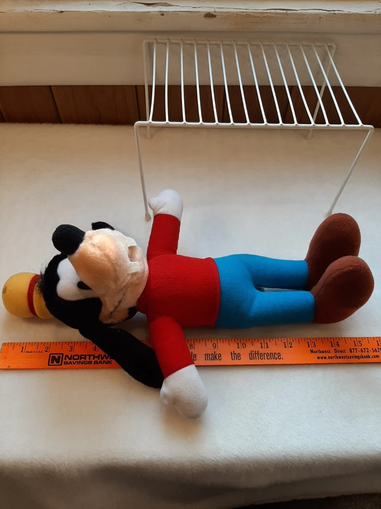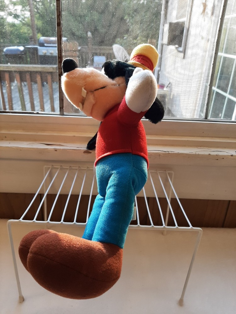 Disneyland Walt Disney World Vintage Goofy Plush Doll Stuffed Animal Toy In good pre-owned condition may show signs of wear from use/handling/storage/display. Please view all pics for condition/details/flaws/issues. SOLD AS IS There is/maybe marks/spots/dirt/debris please see photos 1-19, there is/maybe paint loss/sticker loss please see photos 1-19, there is lite discoloration please see photos 1-19, there are surface scratches to item please see photos 1-19, please see all photos for condition/issues/details.
