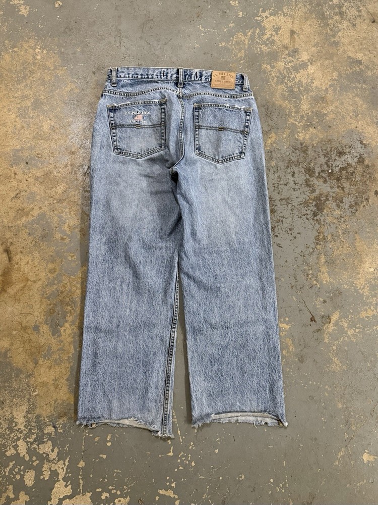 Vintage Distressed US Polo Assassin Y2K Grunge Light Blue Baggy Jeans 34x30