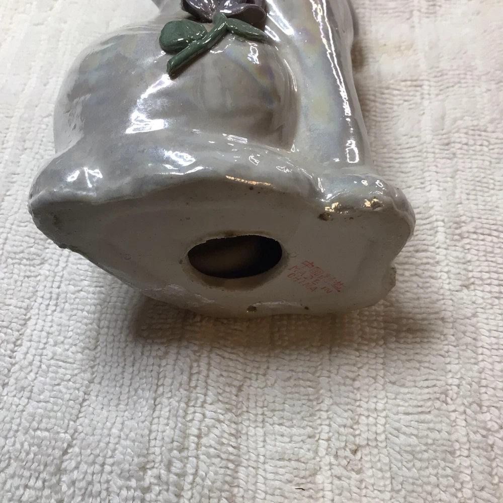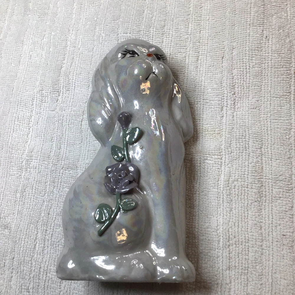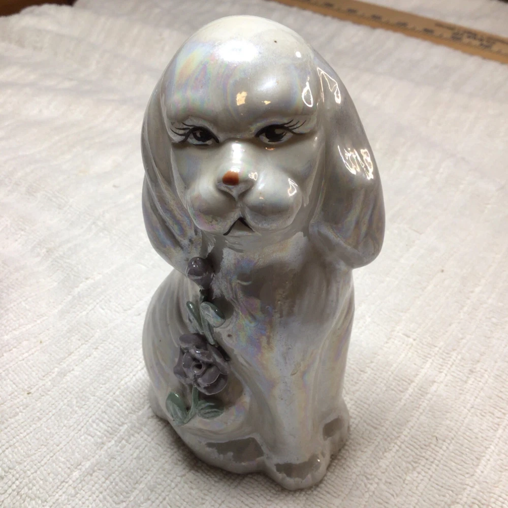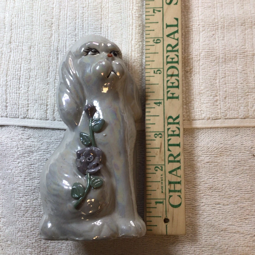 The vintage dog figurine is made of porcelain and features a beautiful design with flowers. This collectible item is a figurine of a dog and would make a lovely addition to any collection. The intricate details and delicate craftsmanship of the figurine add charm and elegance to the overall aesthetic, making it a unique and visually appealing piece for dog lovers and collectors alike. Please look at the pictures closely, as this is the item that you will receive.