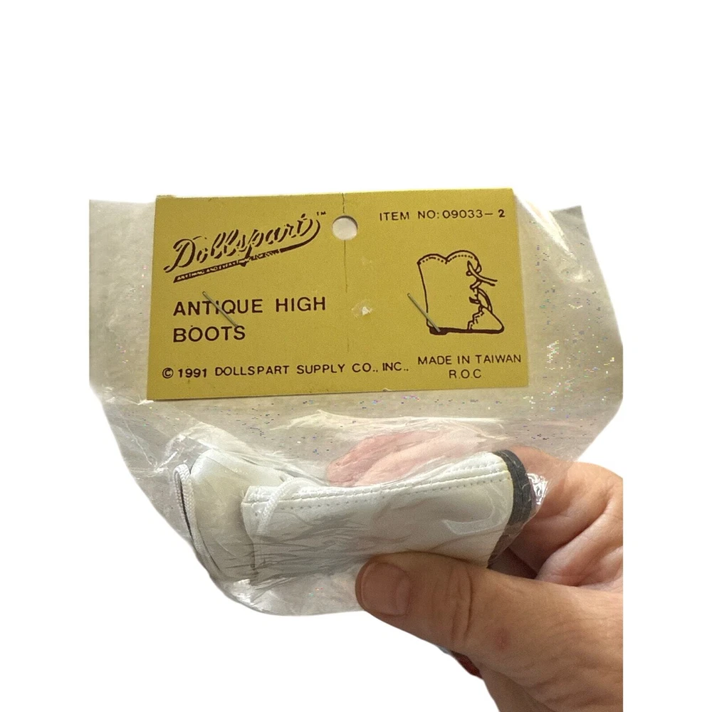 Vintage Dollspart Antique High Boots Lace up Taiwan 1991 white New old stock