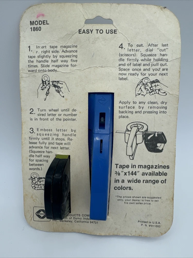 Series:Label MakerBrand:DymoCountry/Region of Manufacture:United StatesMPN:1860Model:Dymo 1860UPC:Does not applygtin13:Does not applyPrint Technology:Manual