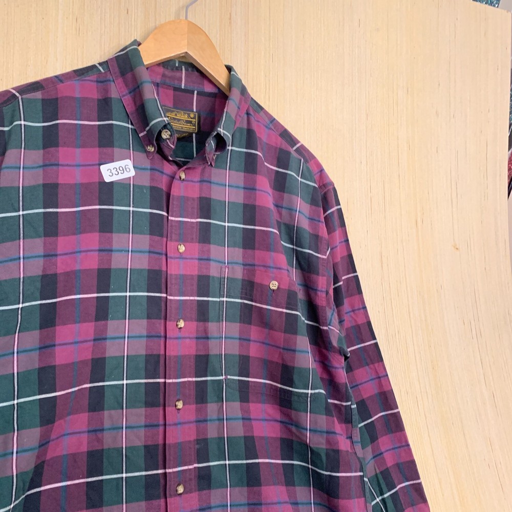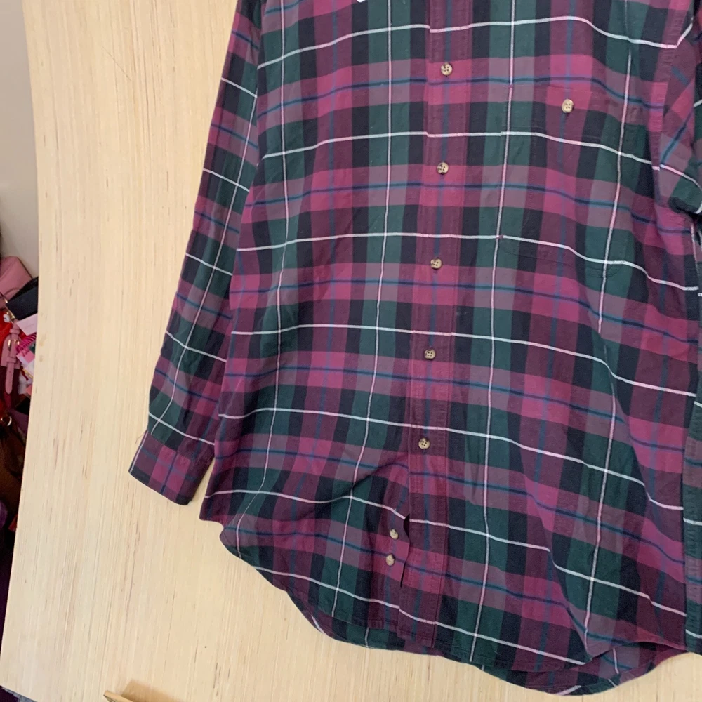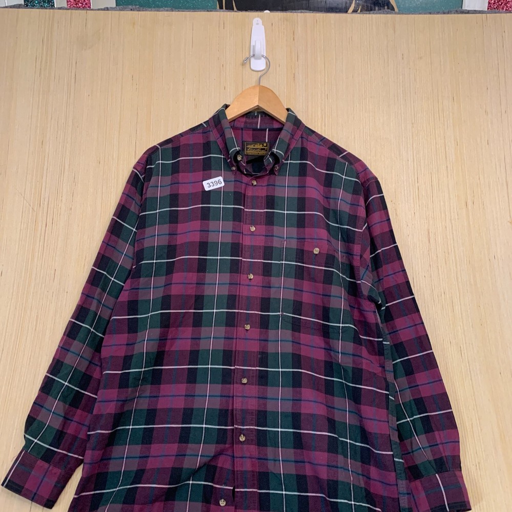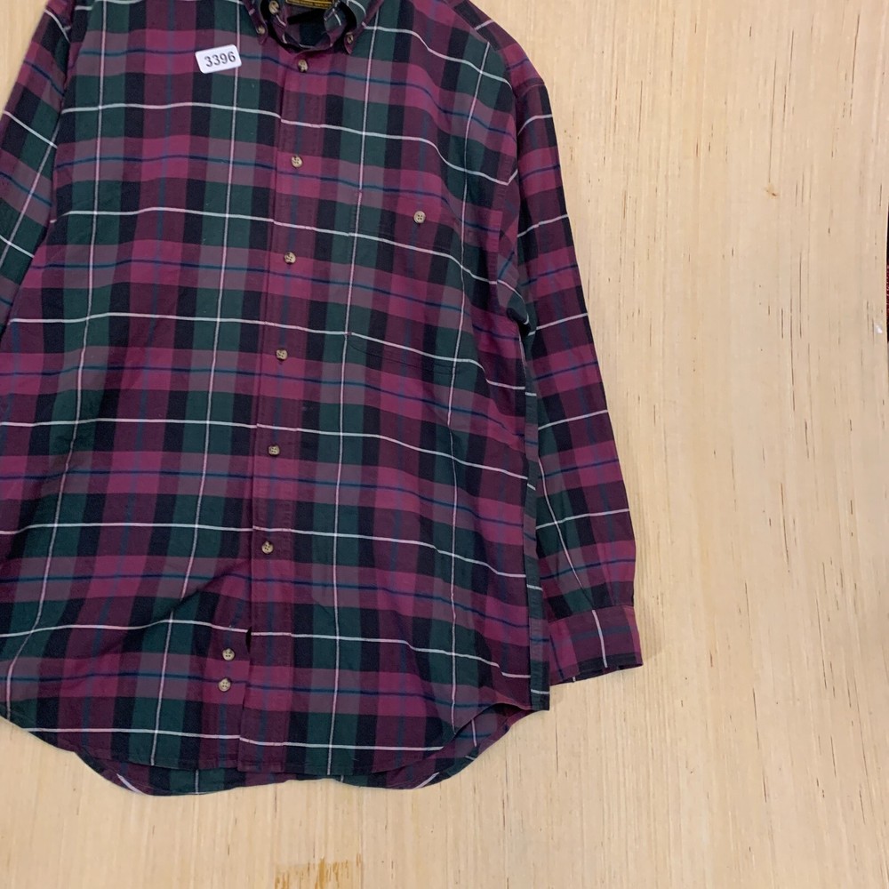 This vintage Eddie Bauer button-up shirt is a colorful addition to any wardrobe. The shirt features a solid pattern, long sleeves, and a crew neck with a button-down collar style. It is made of comfortable flannel fabric and has easy-care features, making it suitable for all seasons. The shirt also has pockets, making it a practical choice for travel, workwear, or casual occasions. The shirt is a size medium and has a regular fit, suitable for men. It has a button-up closure and accents, giving it a formal and business-ready look. The shirt is perfect for a wedding or party/cocktail event, adding a touch of personality to your outfit. This shirt is a must-have for anyone looking for a unique and comfortable addition to their wardrobe.