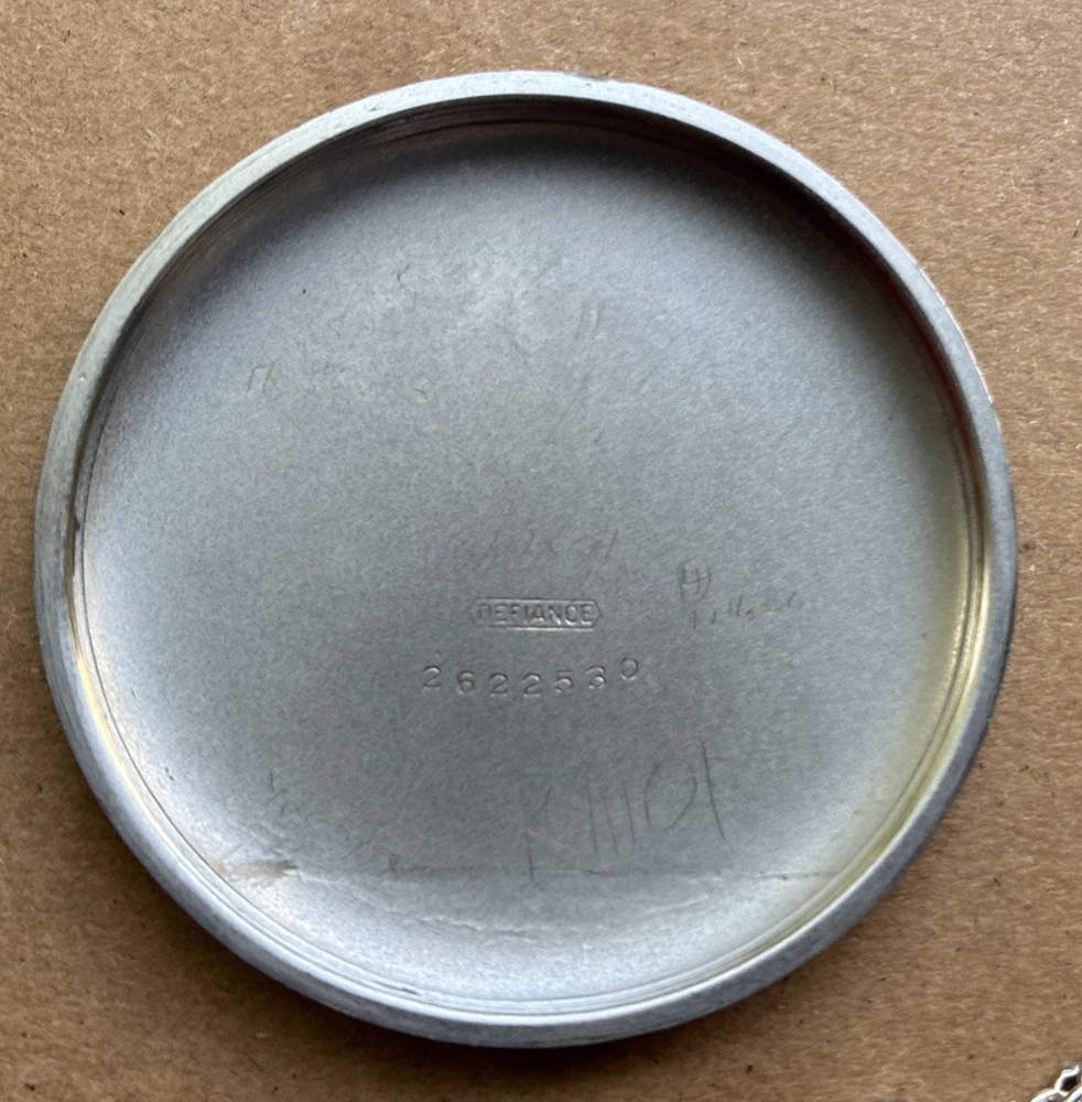 The Elgin Open Face Base Metal Pocket Watch is a vintage timepiece with a classic design. Featuring a damaskeened movement finish, Arabic numerals on the indices, and a white single sunk dial, this pocket watch exudes a casual style perfect for everyday wear. The watch has a screwback caseback and comes with features such as an acrylic crystal, seconds hand, 12-hour dial, and enameled dial. With a base metal case in a satin-finished silver color, this pocket watch from the United States is a unique and charming accessory for men who appreciate a mix of nostalgia and modern functionality. It is used in ok condition works fine. Don’t know how many jewels it is It’s not written inside.? Please check all pics selling as is No returns or refund