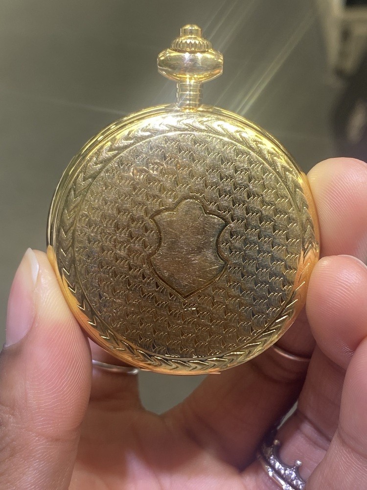 Vintage Elgin Quartz Pocket Watch This pocket watch is in great condition. There are no scratches on the face. It has a date function Japanese movement 2 in diameter US size 16