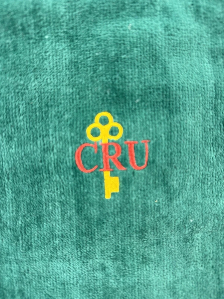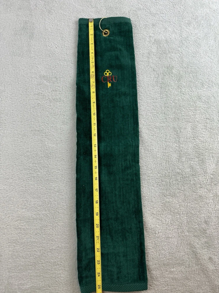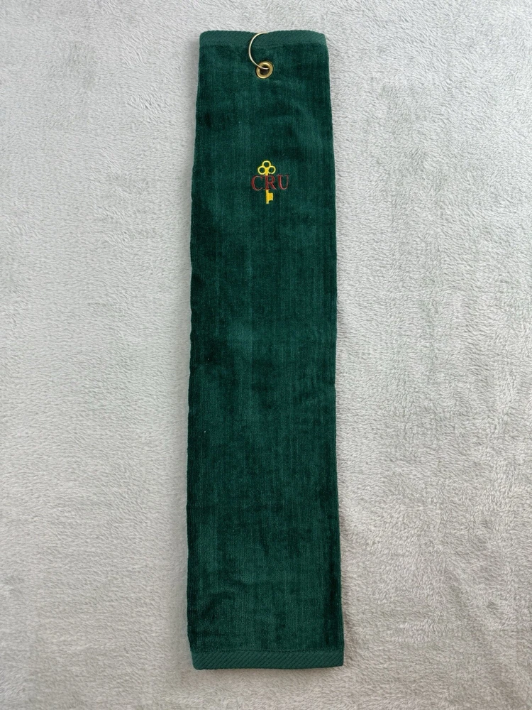 Vintage Embroidered Green CRU Golf Bag Towel Gold Key Symbol