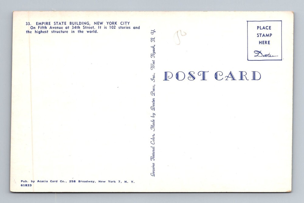 Vintage Empire State Building Souvenir Postcard New York City NY Landmark Keepsake