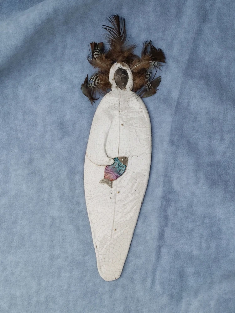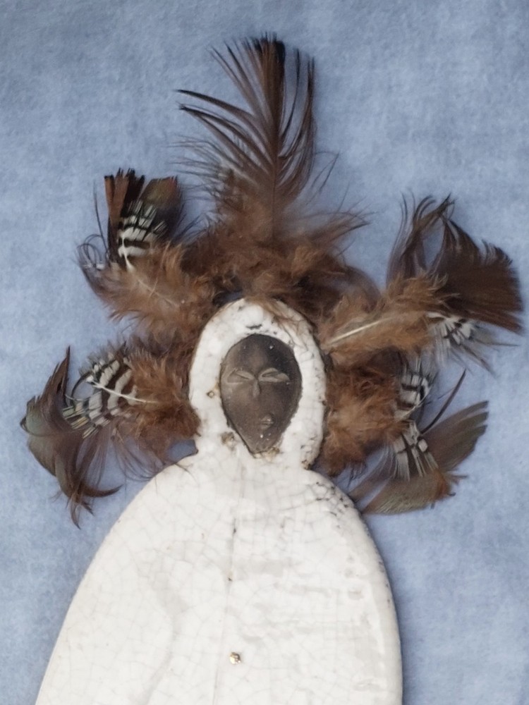 Unique handmade piece feather accent 4x22 inch crazing it is signed on the back