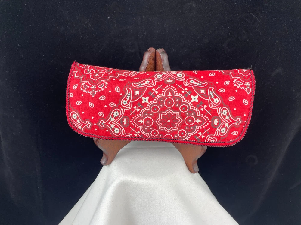 Red Paisley Print (Cowboy) Fabric Semi Hard Case with Velcro Closure Felt inside case For Inventory - BC-06
