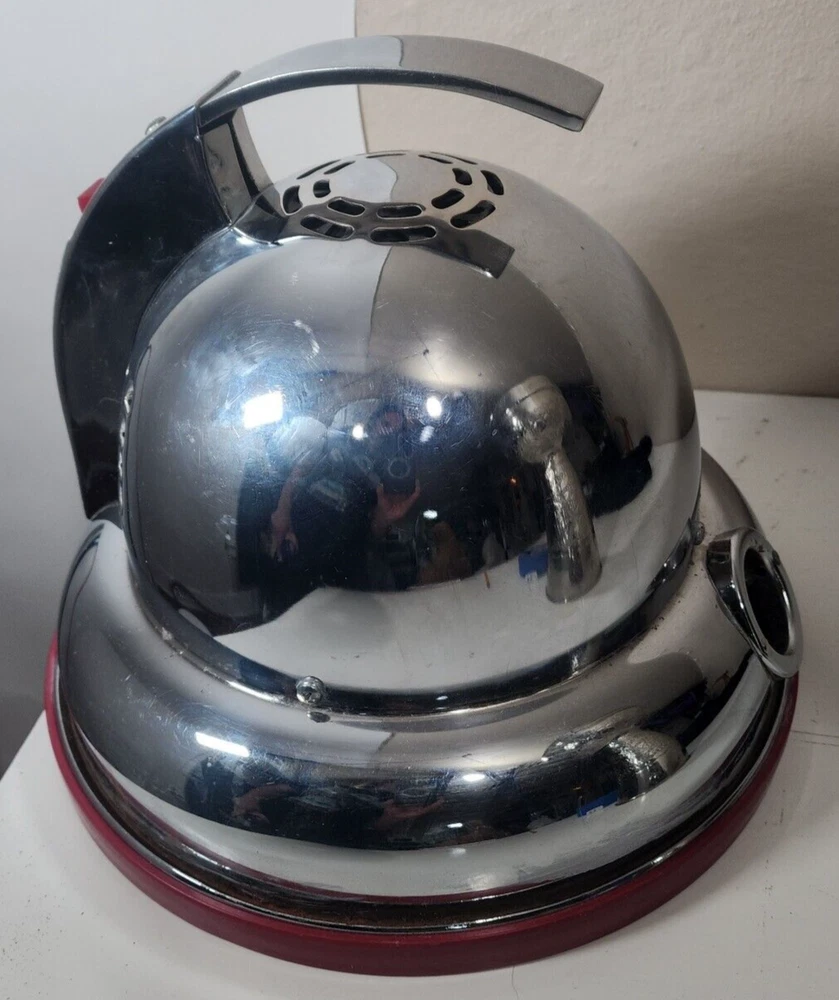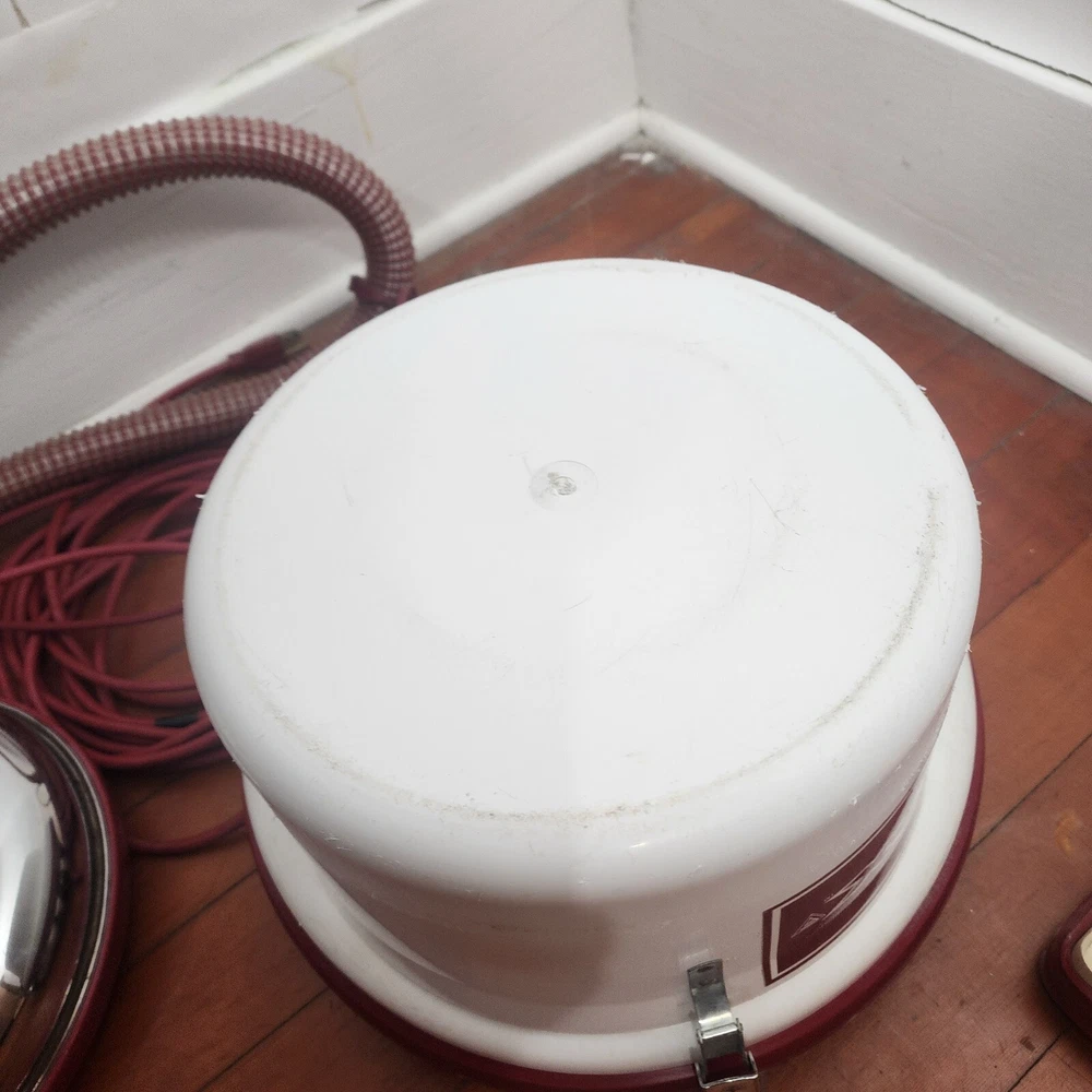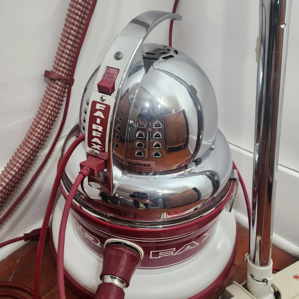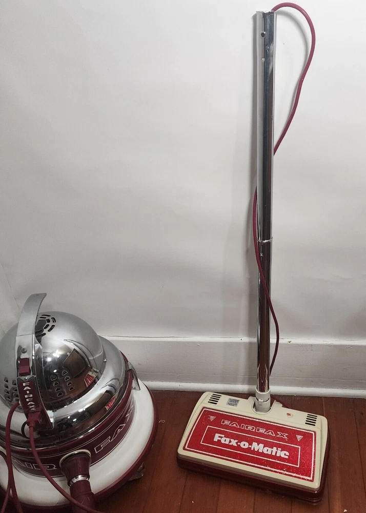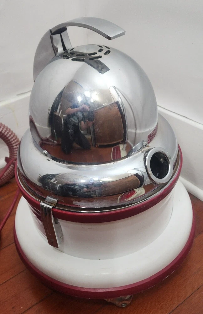 Vintage FAIRFAX Fax-O-Matic Canister Vacuum Working with spinning Floor/Carpet Broom (Carnival ride glitter red). Made in Canada. This thing reminds me of if "Robby the Robot" ( Disney's "The Black Hole"), had a baby with the children's motorcycle ride from the county/state fare. LOL. Vacuum is fully functional & working. Sucks & blows depending on hole used. I spent some time and opened up every part I could get open to clean/disinfected every part I was able to easily get to. Some signs of age can be found throughout machine. The chrome does have some pockmarks/rust spots. I cleaned out a good amount of rust from inside the floor broom along with replacing foam that gasket. I used 1/4" thick foam. I could not find an OEM gasket nor do I believe it is necessary. The cord has a surface nick in rubber sleeve covering. It does not have any exposed wire. I took some black duct tape and covered it. Please see pictures and 5 second video for a full description of physical condition. And to hear motor. Only comes with what is shown in pictures. Hi and welcome to my store. I always strive to offer the highest quality vintage, new, used or unique items I can find. Much of my inventory has been previously used. I always try to find the most gently used items I can find but this does mean that minor imperfections may be present. I will always try and put these imperfections in the item description. Please use the pictures as a guide to the item's condition. Be aware that due to camera limitations minor differences in color can occur. If you ever have any problems or issues with an item that you have purchased please do not hesitate to reach out to me so I can correct or address the situation. I always try and respond to or accommodate all questions about items I am selling. I will offer the fastest and safest shipping with care that I am able to. As a small reminder. I am a small one person business. I do my best to research all prices on the items I am selling. I always take condition into consideration when pricing. In most cases I welcome offers on merchandise. Please be considerate when sending offers. I have to compete with much larger organizations to stay in business. Thank you for your business and support. Have a great day I look forward to filling your order. Sincerely Coopadoopa, - If there is something you are unclear on ask before you bid/buy. - I guarantee that this item will arrive as described/seen in this listing. (Always use the pictures provided for condition). - All Items must be returned with all original contents and components. - In case of damaged parcel: * Please contact me. (Do not accept the package whenever possible if there is obvious damage to the parcel with visible inspection). Note I do use recycled shipping materials whenever possible so small imperfections/marks/scuffs on boxes are normal. I'm talking about large gashes and dents. You will know if it has been damaged in transit when you see it. * I will follow up and file a "damage claim" with the carrier (or address the matter on a case by case situation) . * All shipping, packaging materials boxes/bags/wrappers/padding must be saved. - In case of a missing package please contact me after checking the tracking and verifying that it has stopped updating. I will contact eBay and make them aware of the situation. - I keep all of my inventory in a clean dry space free of as many environmental contaminants as is possible. As many of my items are pre-owned or purchased on closeouts I am unable in most cases to tell you where the item was stored or its history prior to my obtaining it. -Thank you for reading and understanding this list. I treat each and every purchase on an individual basis. I am always open to reasonable compromise when a situation requires.