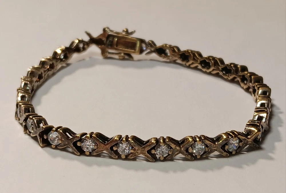 Vintage FAS 925 Sterling Silver Cz Tennis Bracelet 7.5½ XO