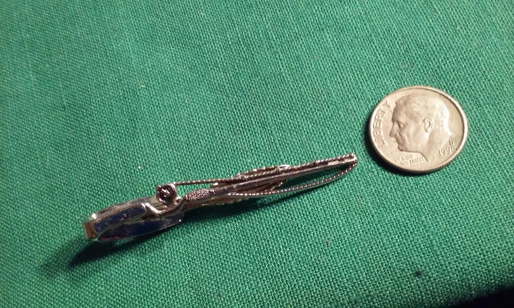 Vintage FISHING POLE Theme Tie Clip Bar Silver-Tone Metal