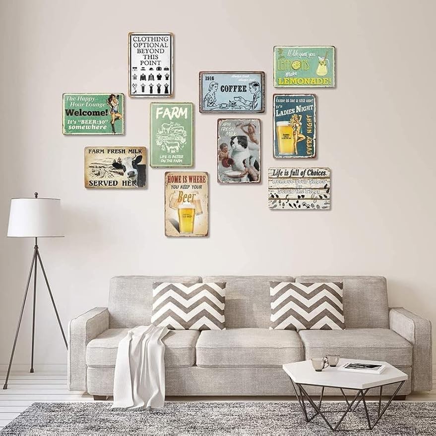 Product Description Welcome to our store. We give you the best way to get whatever you want! About our product size: approx. 18x12 Inch(20x30cm) metal tin sign. This vintage metal tin sign comes with 4 pre-drilled holes for easy hanging. Available pushpins, nails, tape, etc. Decorative metal painting is a must-have for bars, cafes, houses, farmhouses for any character venue or home decor. The metal tin sign will be a great gift, happy for relatives, friends and family who like this gift. Add it to your cart now and we'll deliver it to your home quickly and safely. We have many metal signage poster plaques with different themes, we will give you the best products and services! If you have any questions or concerns about our products, please feel free to contact us, we are always with you.