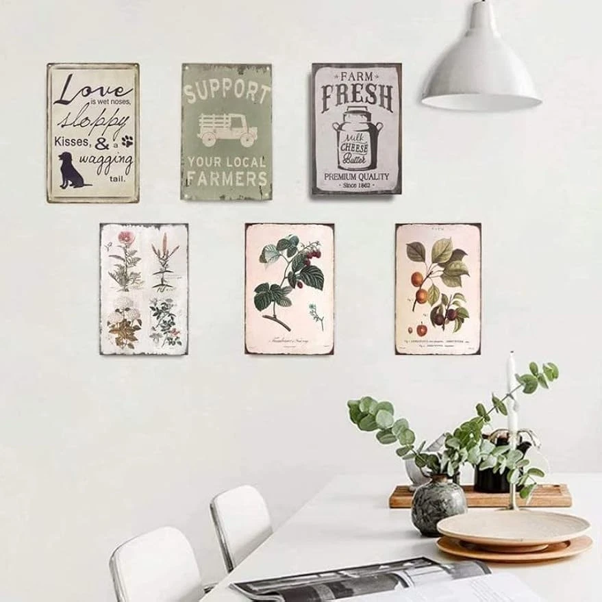 This charming metal tin sign adds rustic farmhouse vibes to any space! The vibrant apple painting looks so lifelike, and the sturdy metal build feels high-quality. Love the pre-drilled holes—made hanging a breeze in my kitchen. Perfect for adding a cozy, vintage touch to cafes, bars, or even a farmhouse-style home. Great gift idea for anyone who loves rustic decor!