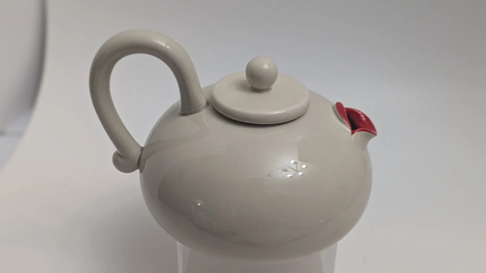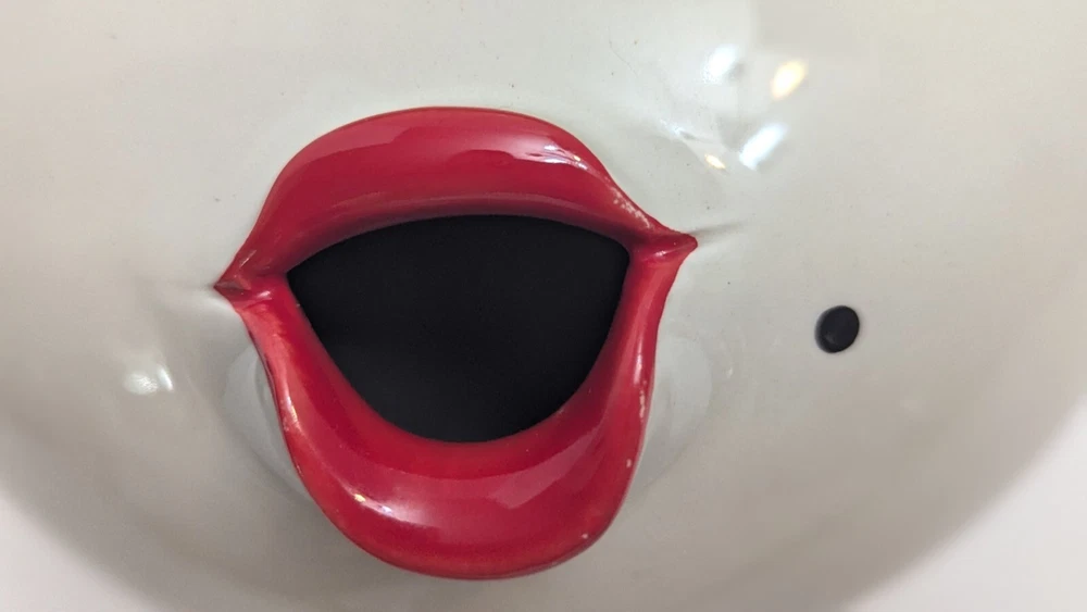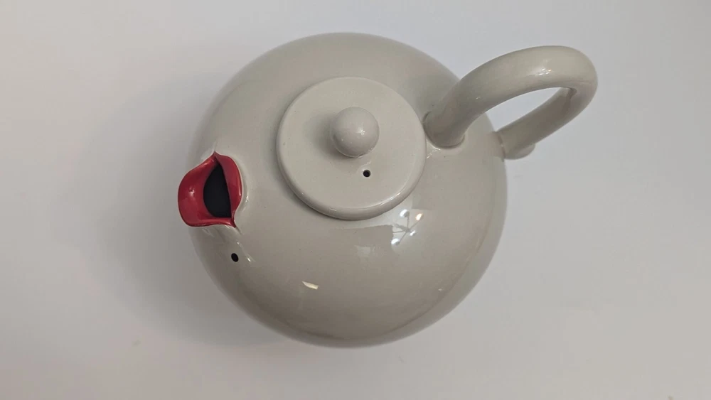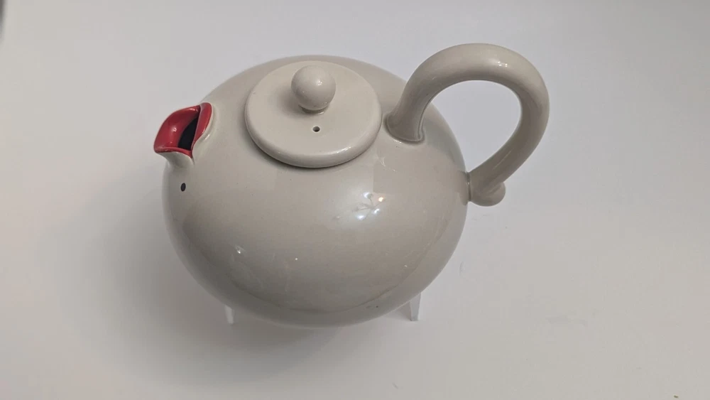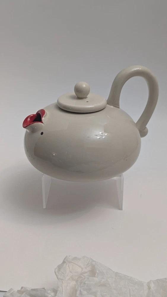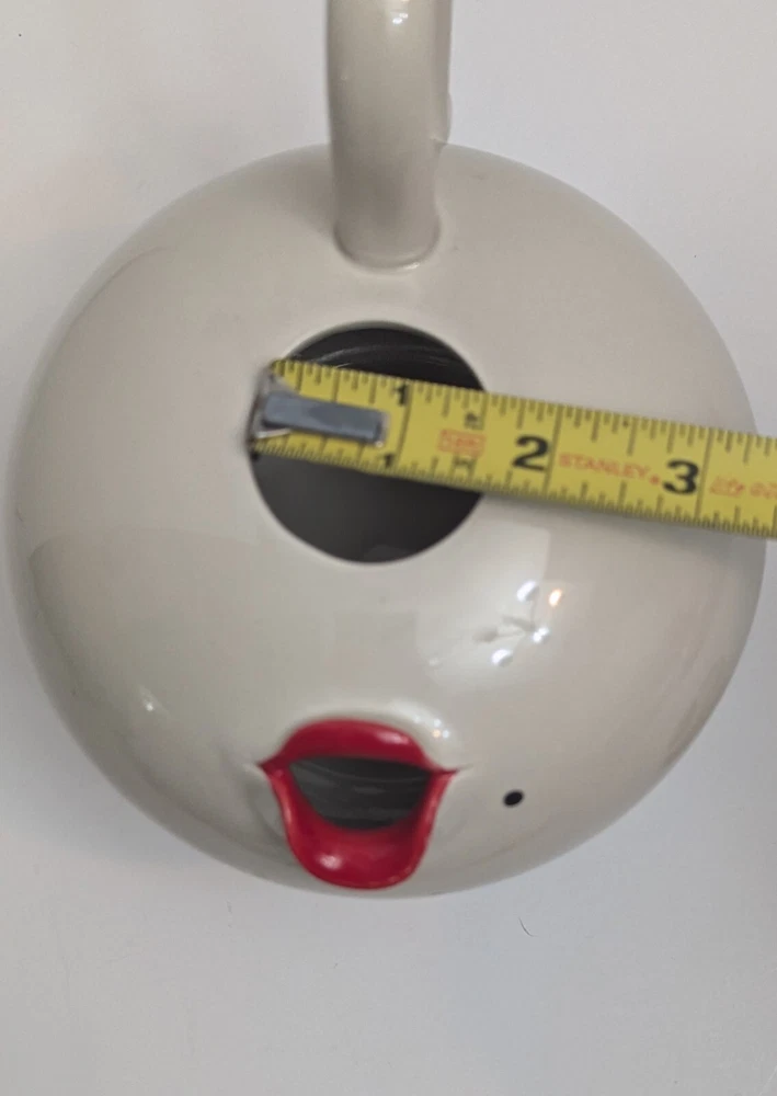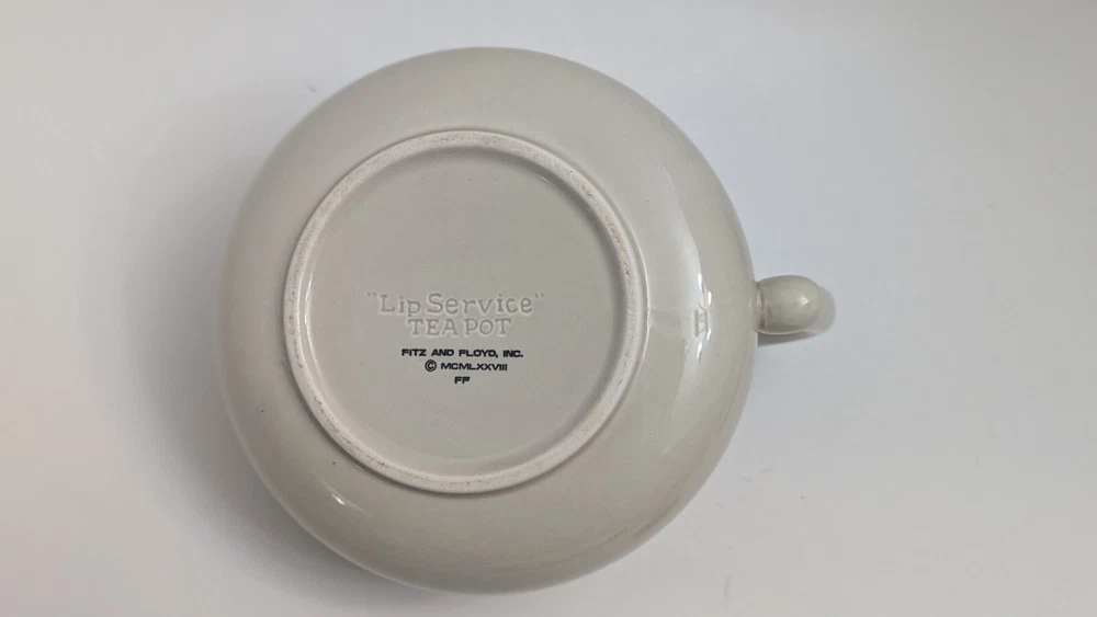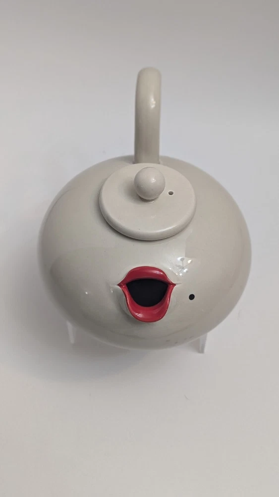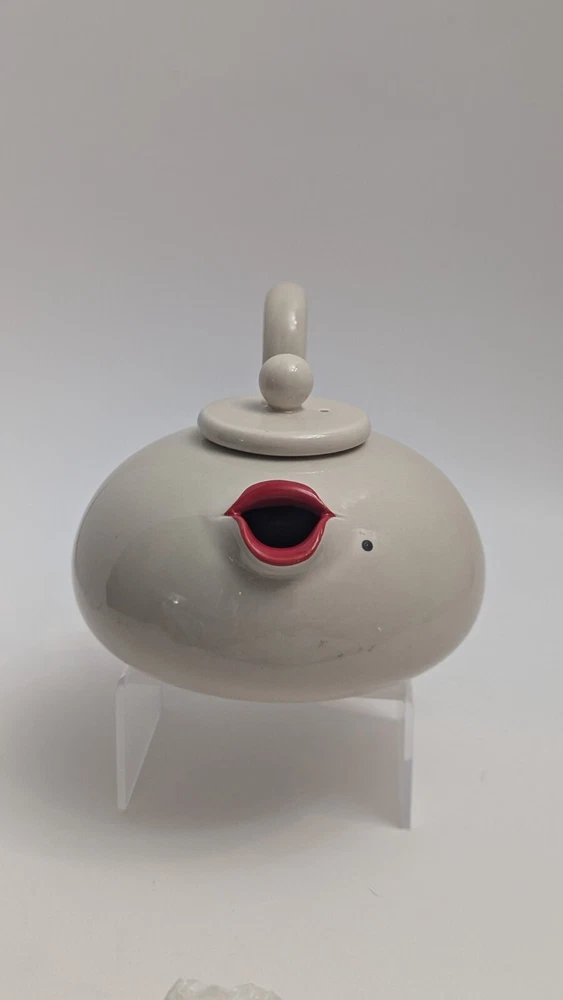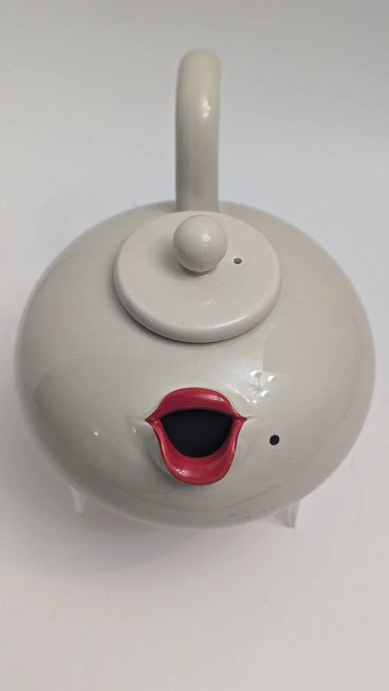 Vintage 1970s Fitz and Floyd "Lip Service" Marilyn Monroe teapot. It's cream colored features the classic Marilyn Monroe red lips and beauty mark as the spout. It's got a 4 oz capacity. It's in excellent used condition 831 SB20